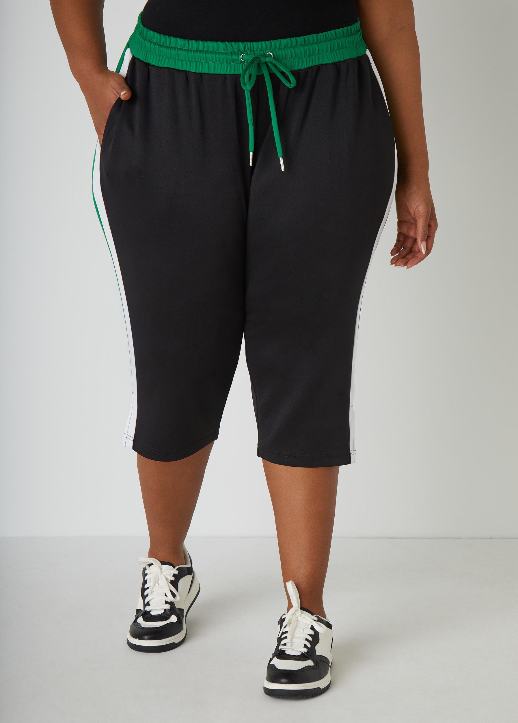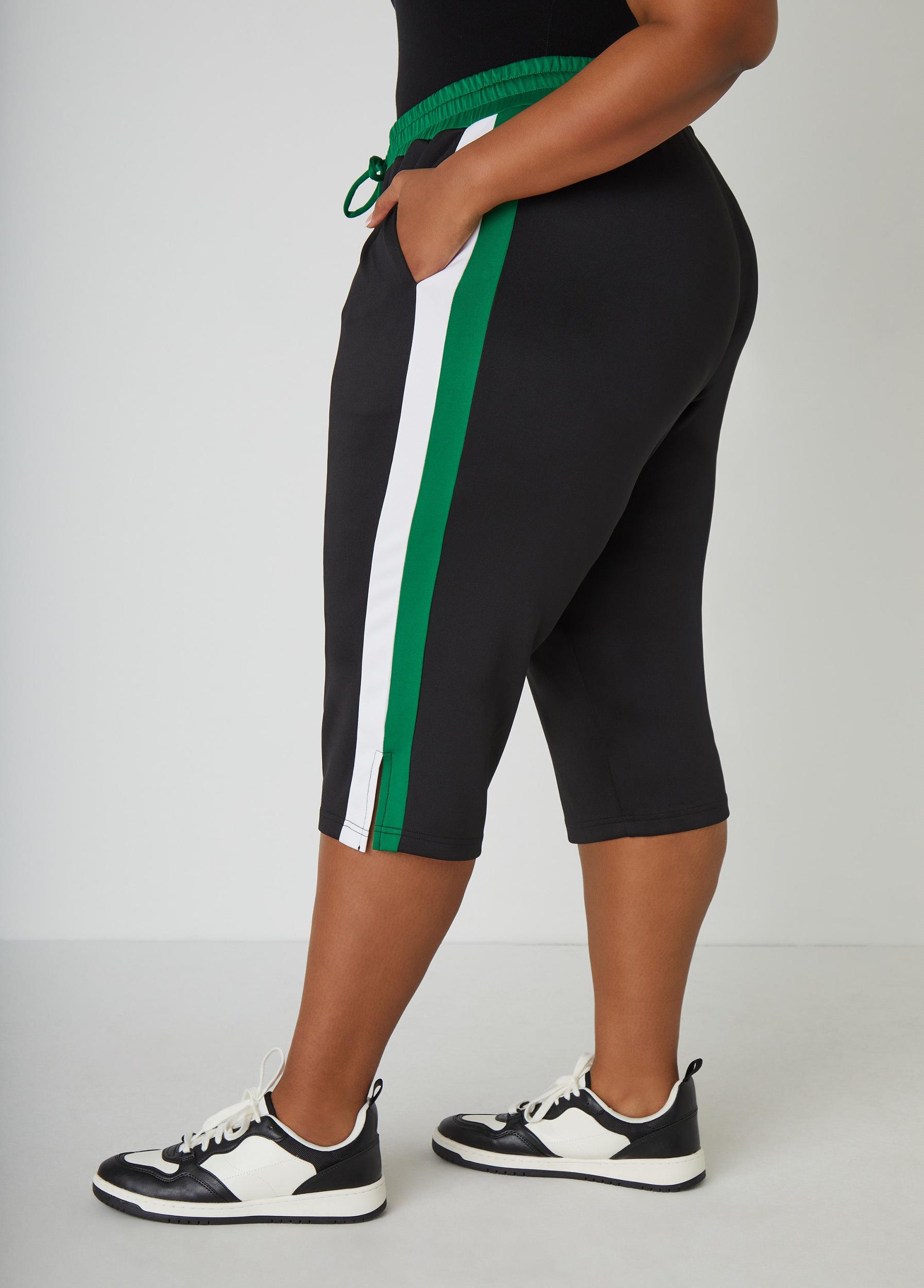 Easy, breezy, and made for summer fun—these high-rise stretch-knit capris keep you cool and comfy all day long. Designed with sporty striped trims, a flexible drawstring waist, and handy side pockets, they’re the perfect mix of style and ease. Pair them with the matching jacket for a fresh, coordinated look that’s ready for anything.