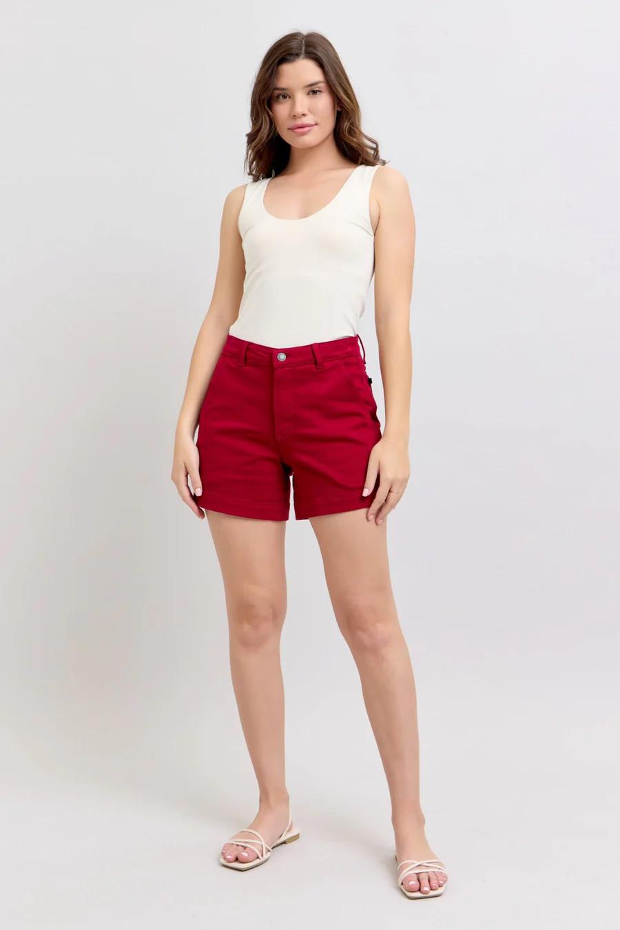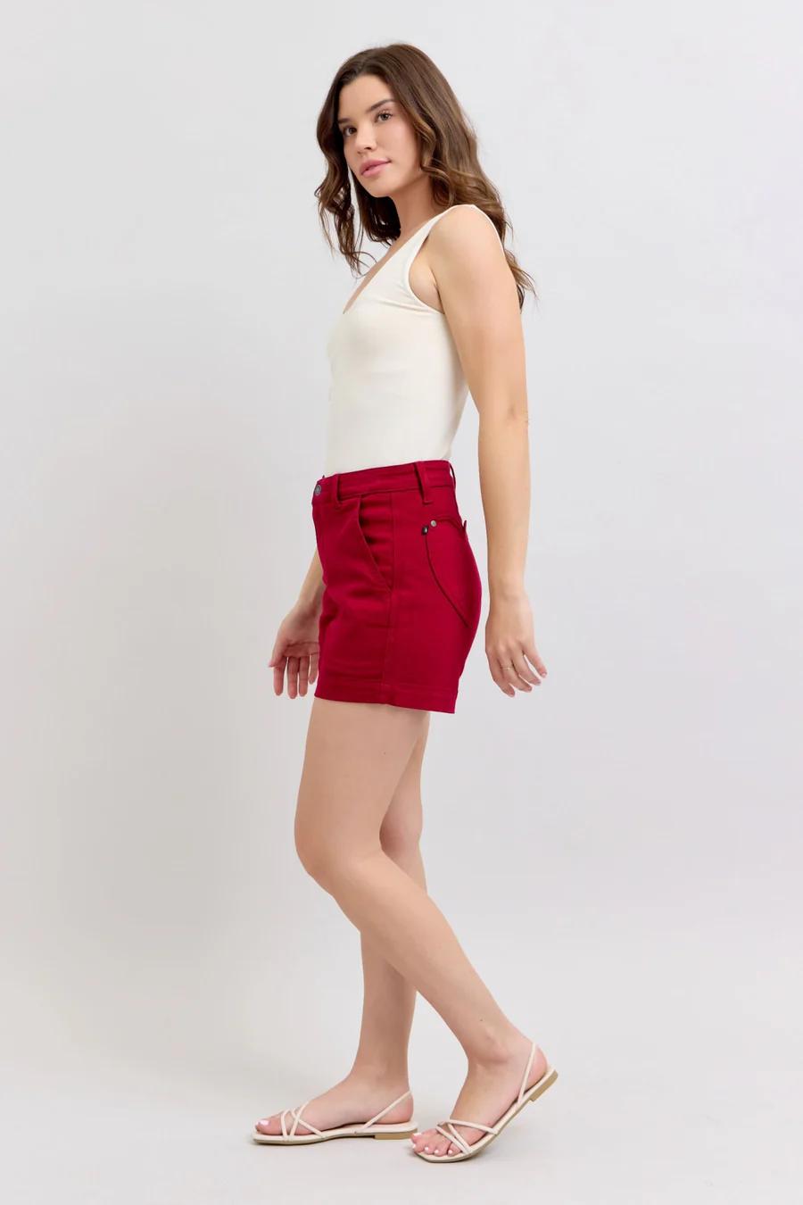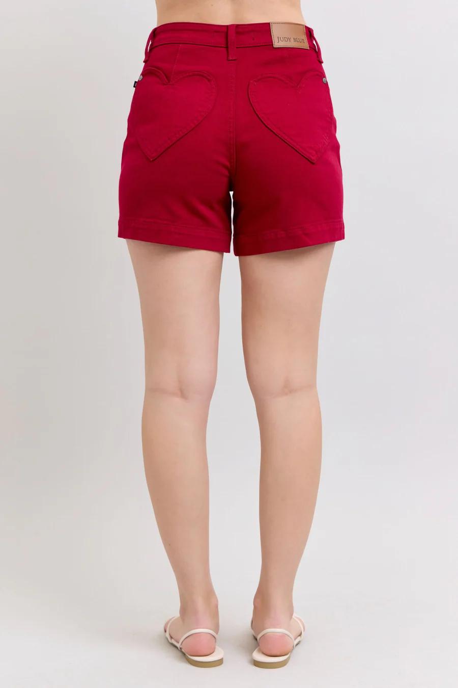 HIGH WAIST TUMMY CONTROL HEART SHAPED POCKETED SHORTS