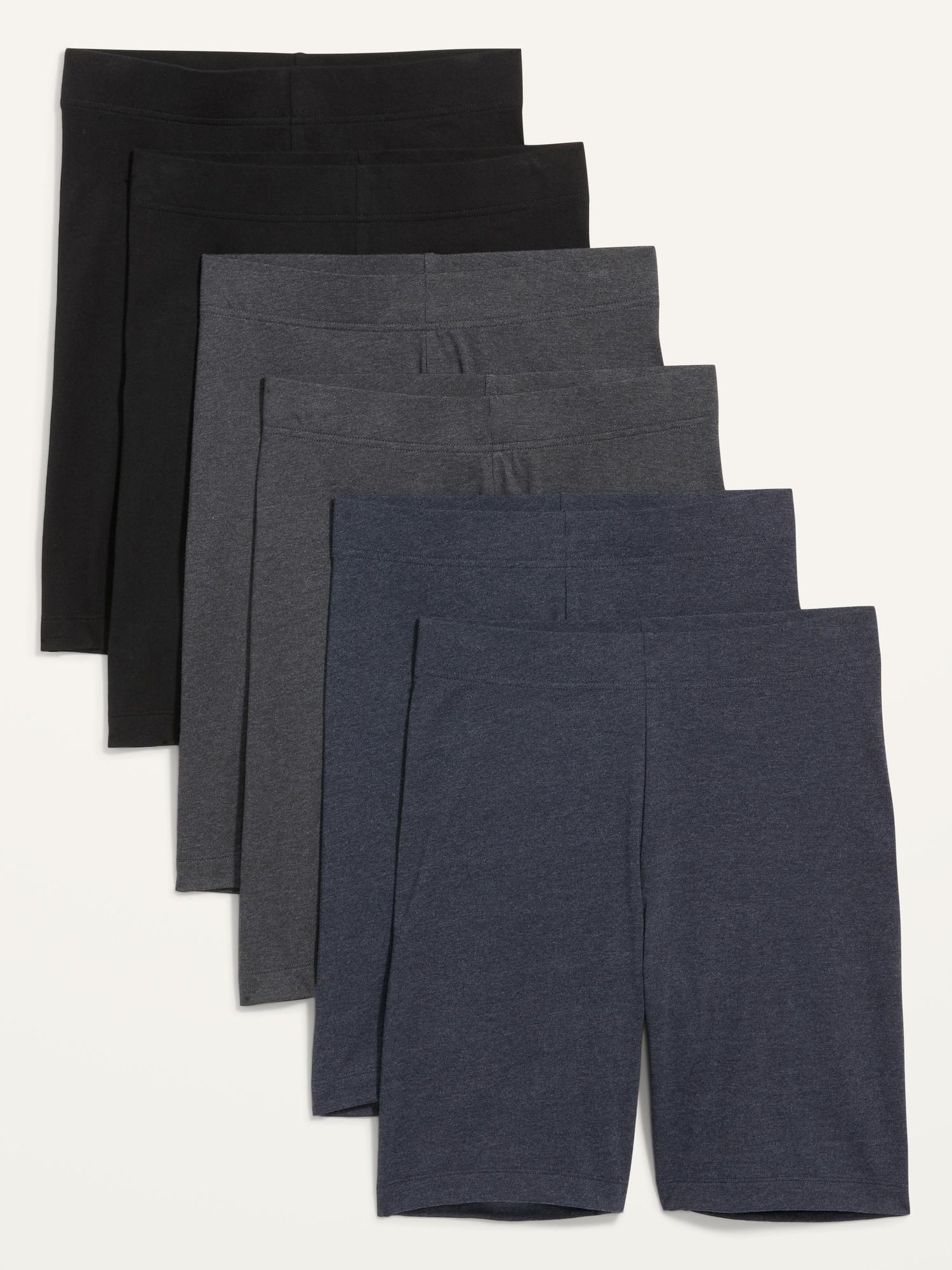 Online exclusive! Pack includes 6 pairs of high-waisted biker shorts. Elasticize high-rise waistband. Soft-washed, lightweight jersey, with comfortable stretch. Easy pull-on style. #831463 High-waisted biker shorts sit at belly button. Fitted through hip and thigh. Women's biker shorts hit at thigh. Regular inseam: 8". Petite inseam: 7 1/4". Tall inseam: 9 1/4". Machine wash cold, tumble dry low.