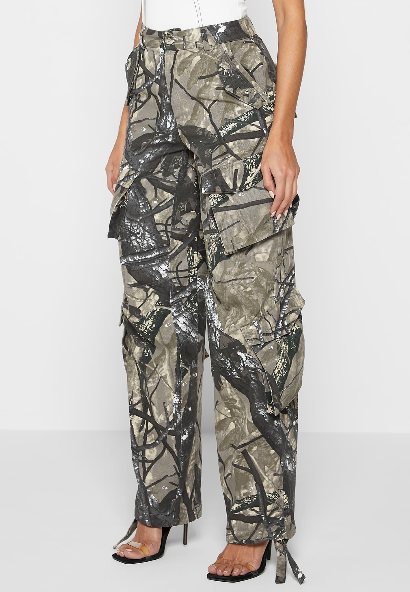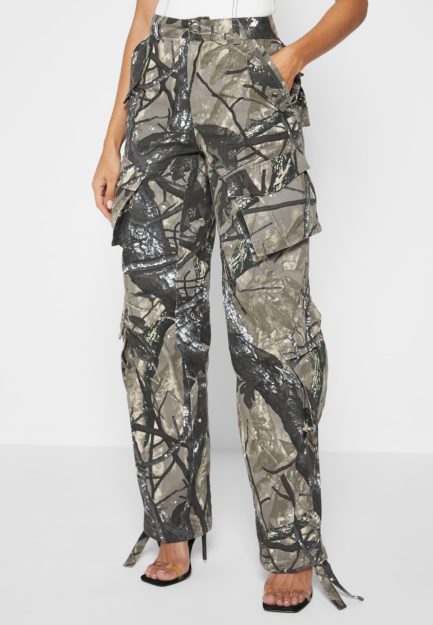 These high waisted cargo pants hug the waist and loosely hang off the hips for the perfect oversized style cargo pants High Waisted Cargo Pants Silhouette Wide Leg Side Slip Pockets 3D Pockets Internal Waistband Adjusters Self Fabric Adjusters at Hem Vegan Leather Manière De Voir Branded Patch 100% CottonAlways check the care label for wash instructions.