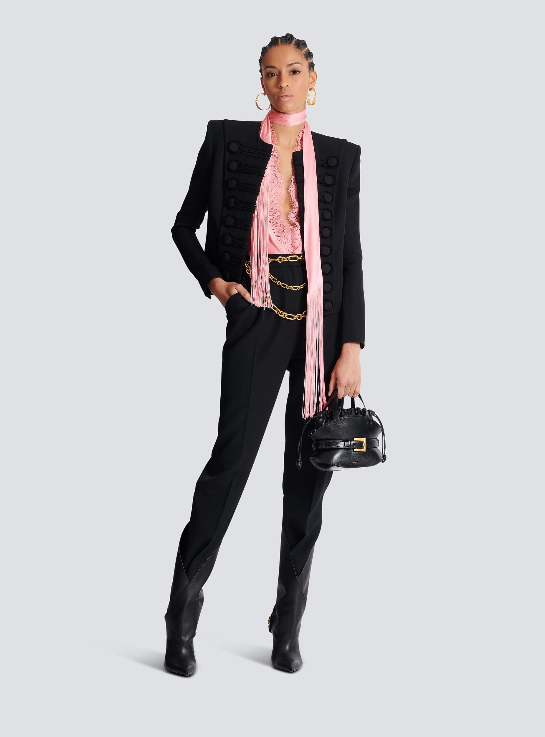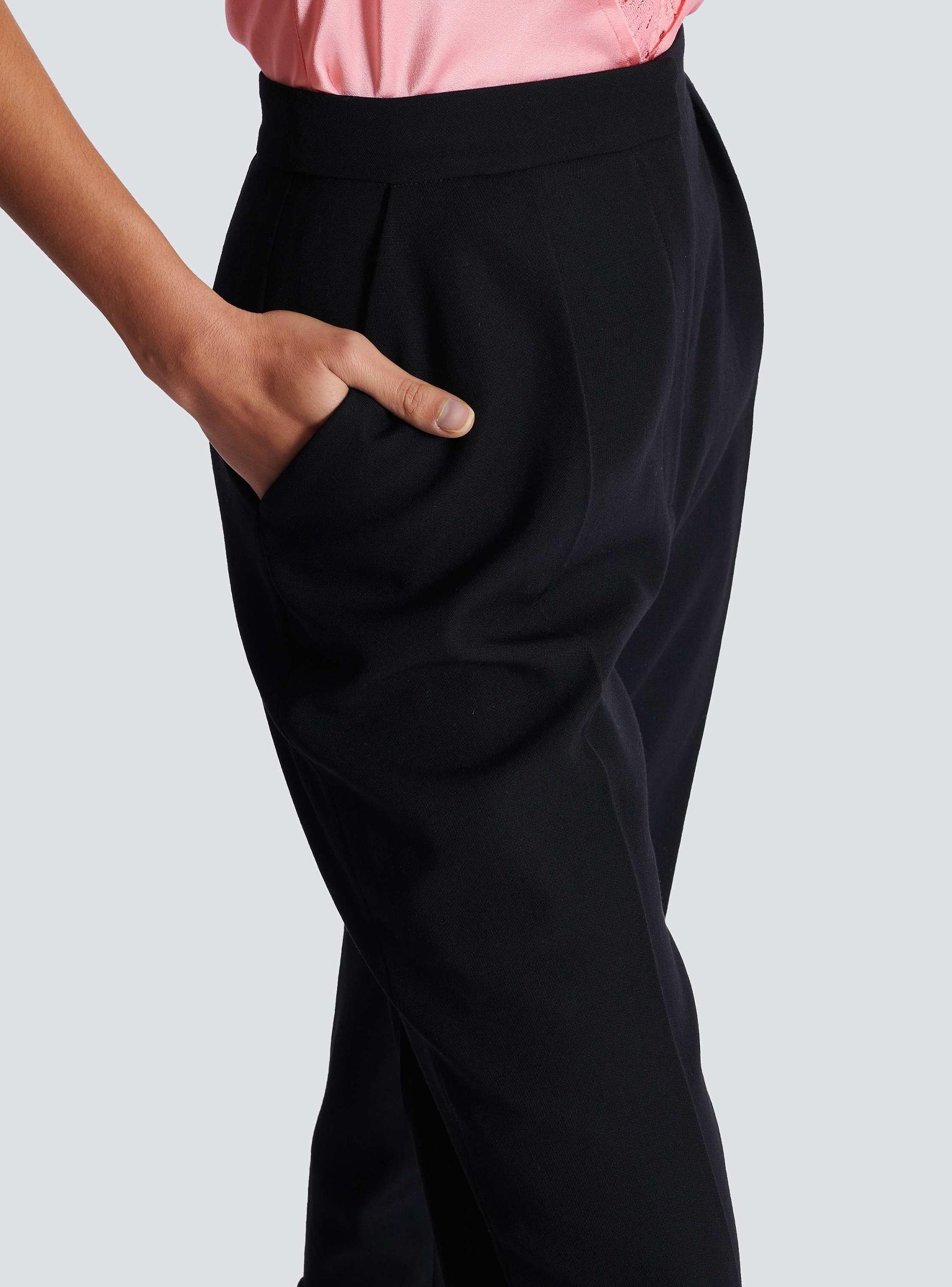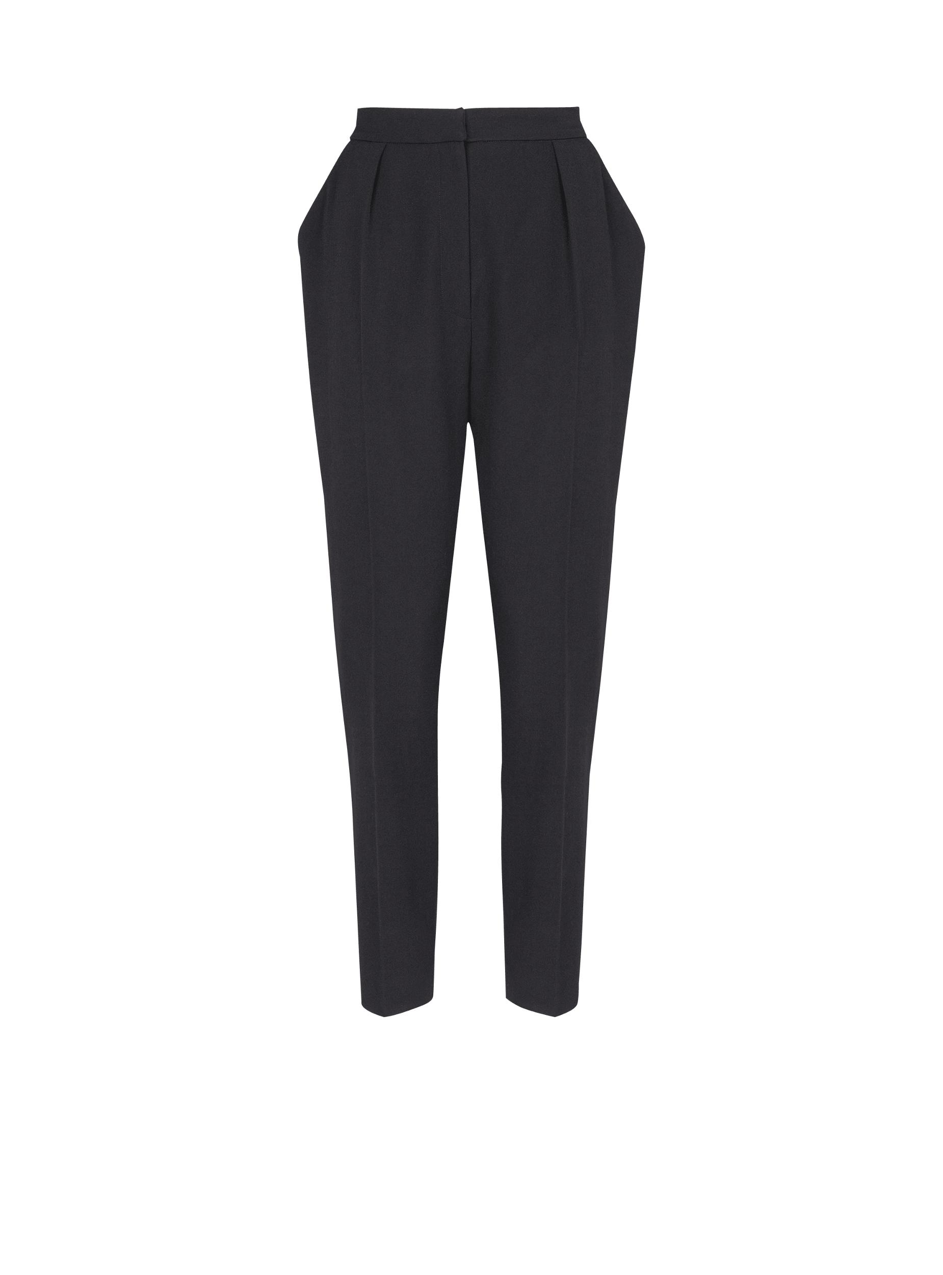 Tailored grain de poudre trousersWaistbandZip and hook fastening under a placketPressed front pleats 2 Italian side pocketsHigh-waisted fitModel measures 179cm and wears a size 36Main material: 100% sheep’s woolMade in PortugalItem: FF1PN190WC09100% of the wool fibres used to make this garment are sourced from sheep farms that are certified and animal welfare-friendly