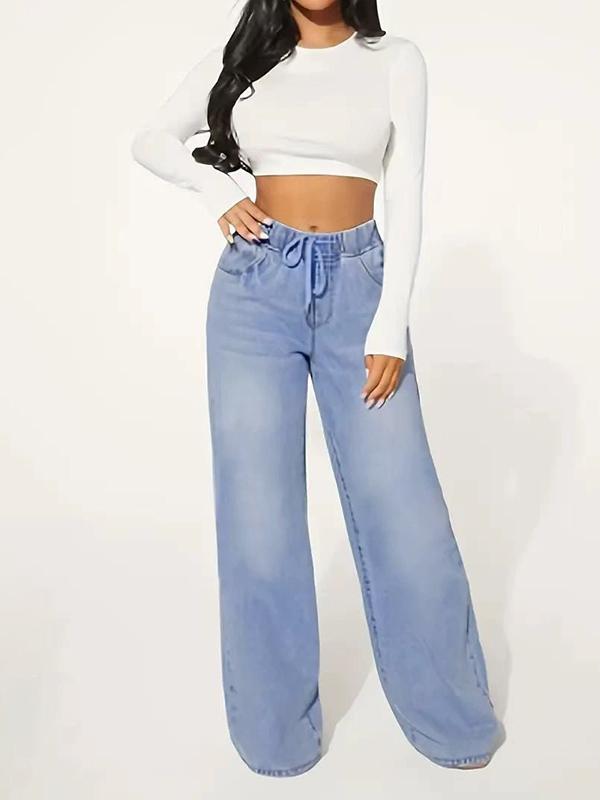 Stay stylish and comfortable with these high-waisted loose jean pants, featuring a drawstring waist, elastic fit, and split-joint design for a trendy touch.