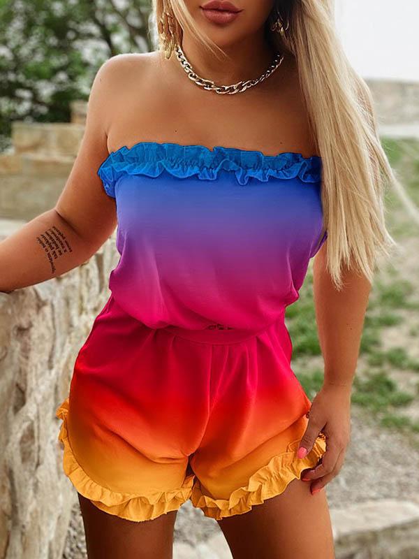 High Waisted Plus Size Gradient Ruffled Tied Waist Tube Rompers