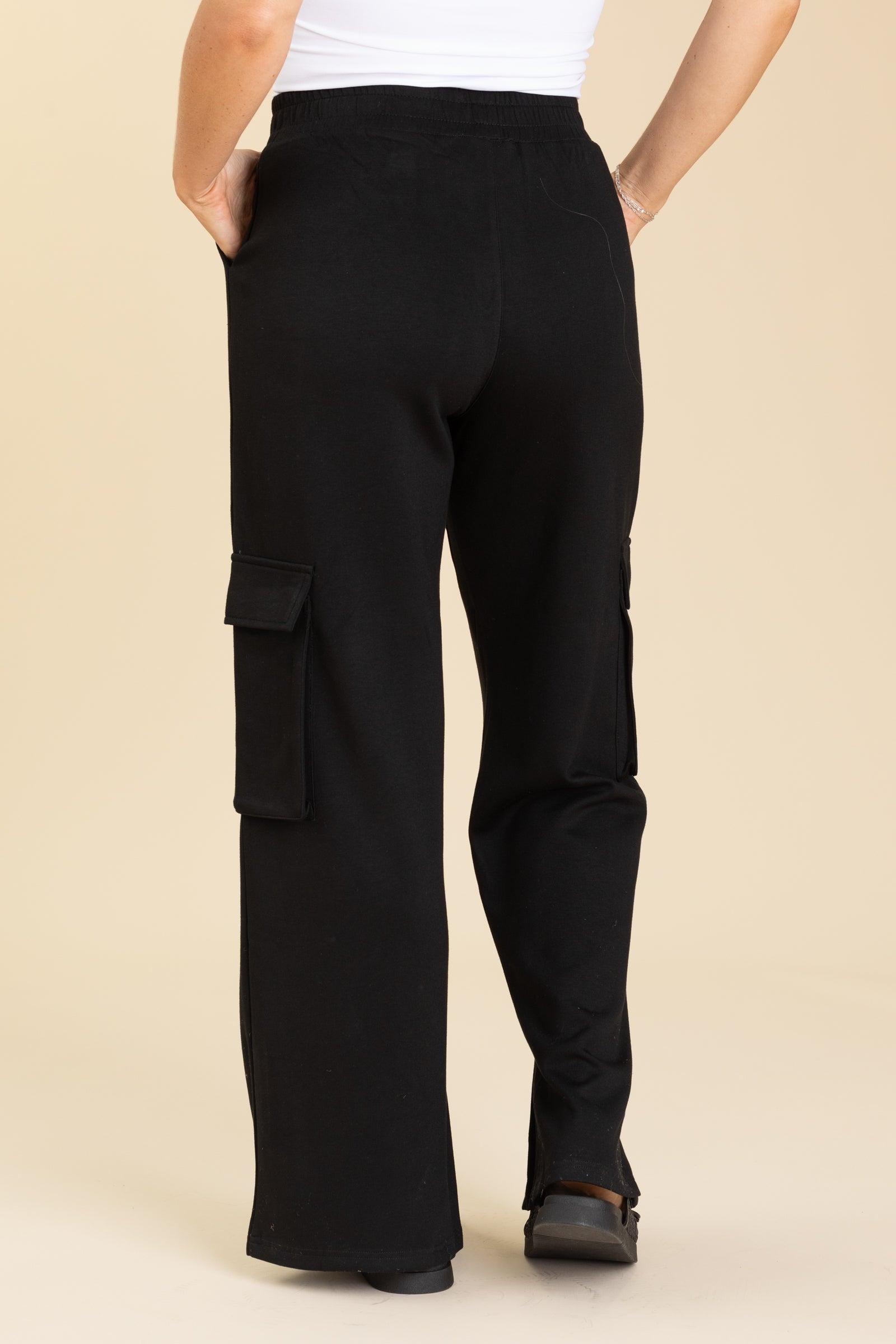 Product Details Colors: Black/ Heather Grey Print: Solid Style: Cargo Pants Brand: Mono B Material and Care 55% Rayon 40% Polyester 5% Spandex Hand Wash Cold Line Dry Size and Fit Small: Waist 26" Rise 12" Inseam 31.5" Medium: Waist 28" Rise 12" Inseam 31.5" Large: Waist 30" Rise 12.5" Inseam 31.5" X Large: Waist 32" Rise 13" Inseam 31.5" 1X Large: Waist 36" Rise 13.5" Inseam 31.5" 2X Large: Waist 38" Rise 13.5" Inseam 31.5" 3X Large: Waist 40" Rise 14" Inseam 31.5" Erica is 5’7” and wearing her true size medium