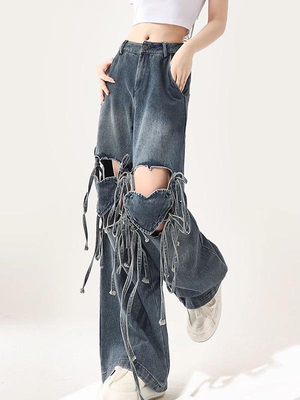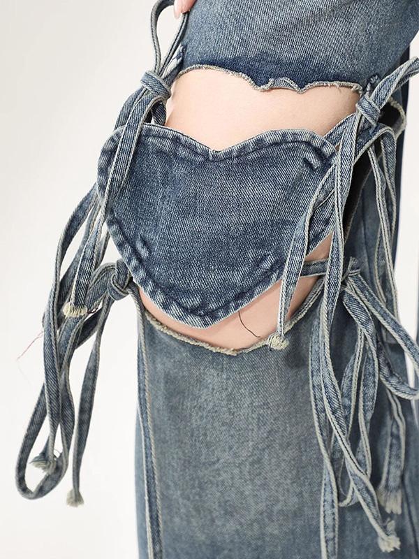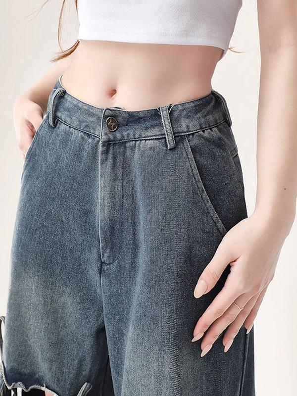 High-Waisted Straps For A Loose Fit Ripped Jeans