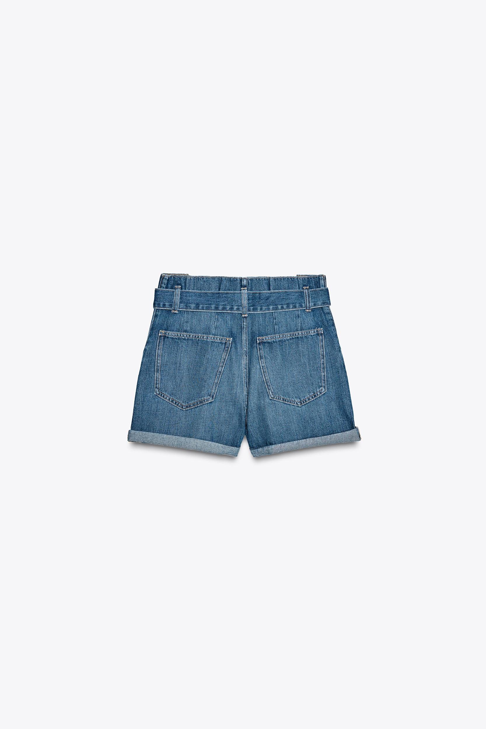 HIGH-WAISTED TRF DENIM PAPER BAG SHORTS