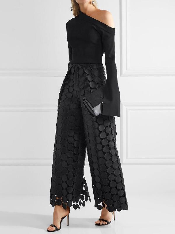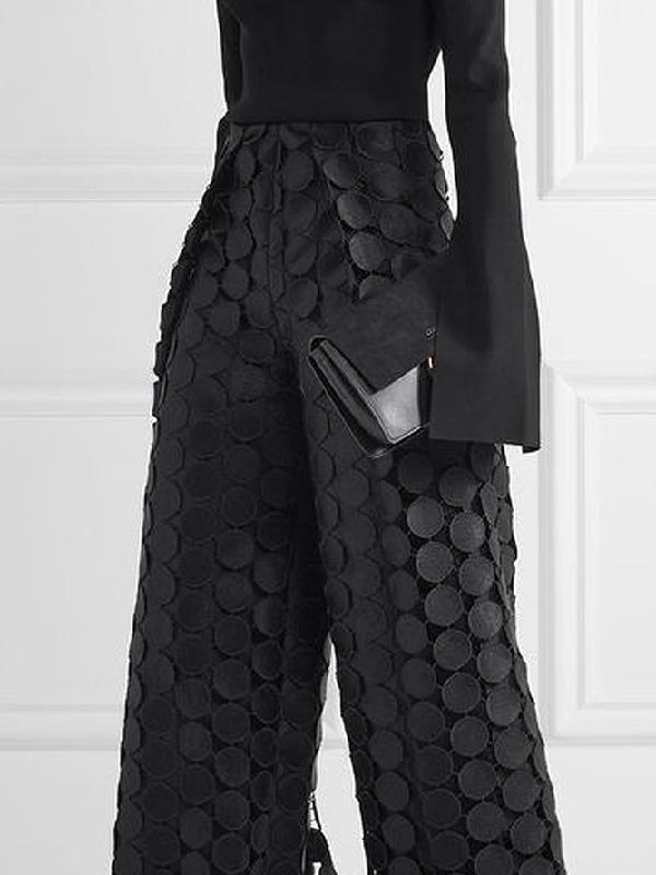 High Waisted Wide Leg Hollow Polka Dot Solid Color Pants Trousers