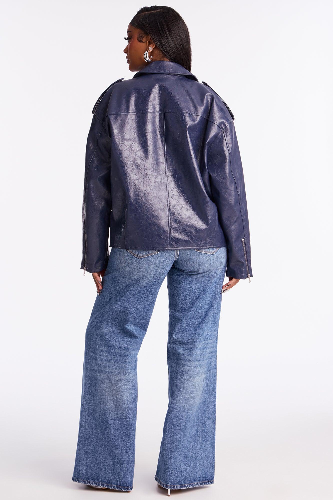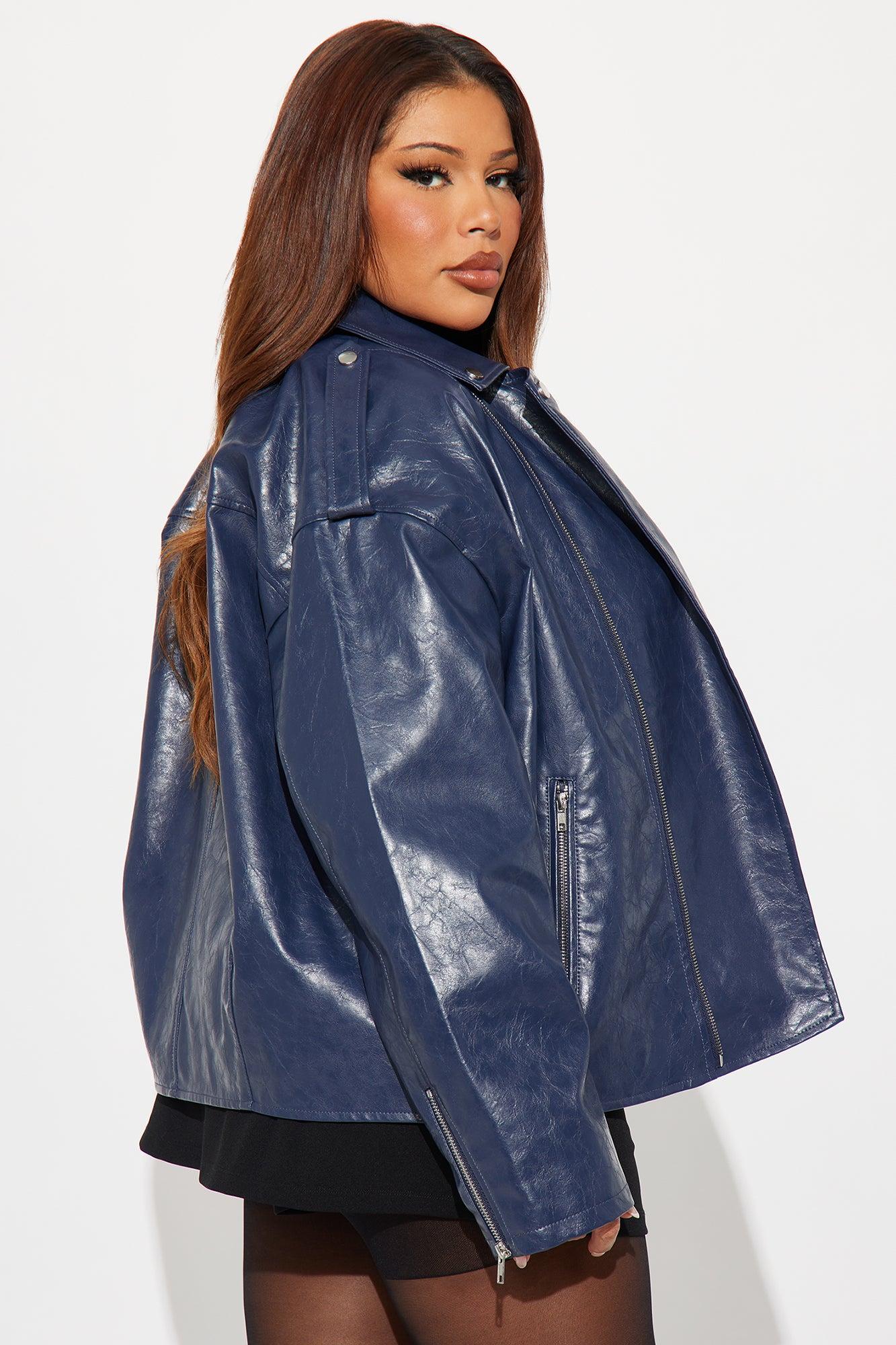 Available In Burgundy, Midnight Blue, Silver And Yellow. Faux Leather Moto Jacket Collar Neckline Long Sleeves Zipper Closure Zipper Pockets Fully Lined Self Coating : 100% Polyurethane Backing : 100% Polyester Lining : 100% Polyester Imported California Proposition 65WARNING: Cancer and Reproductive Harm - www.P65Warnings.ca.gov.