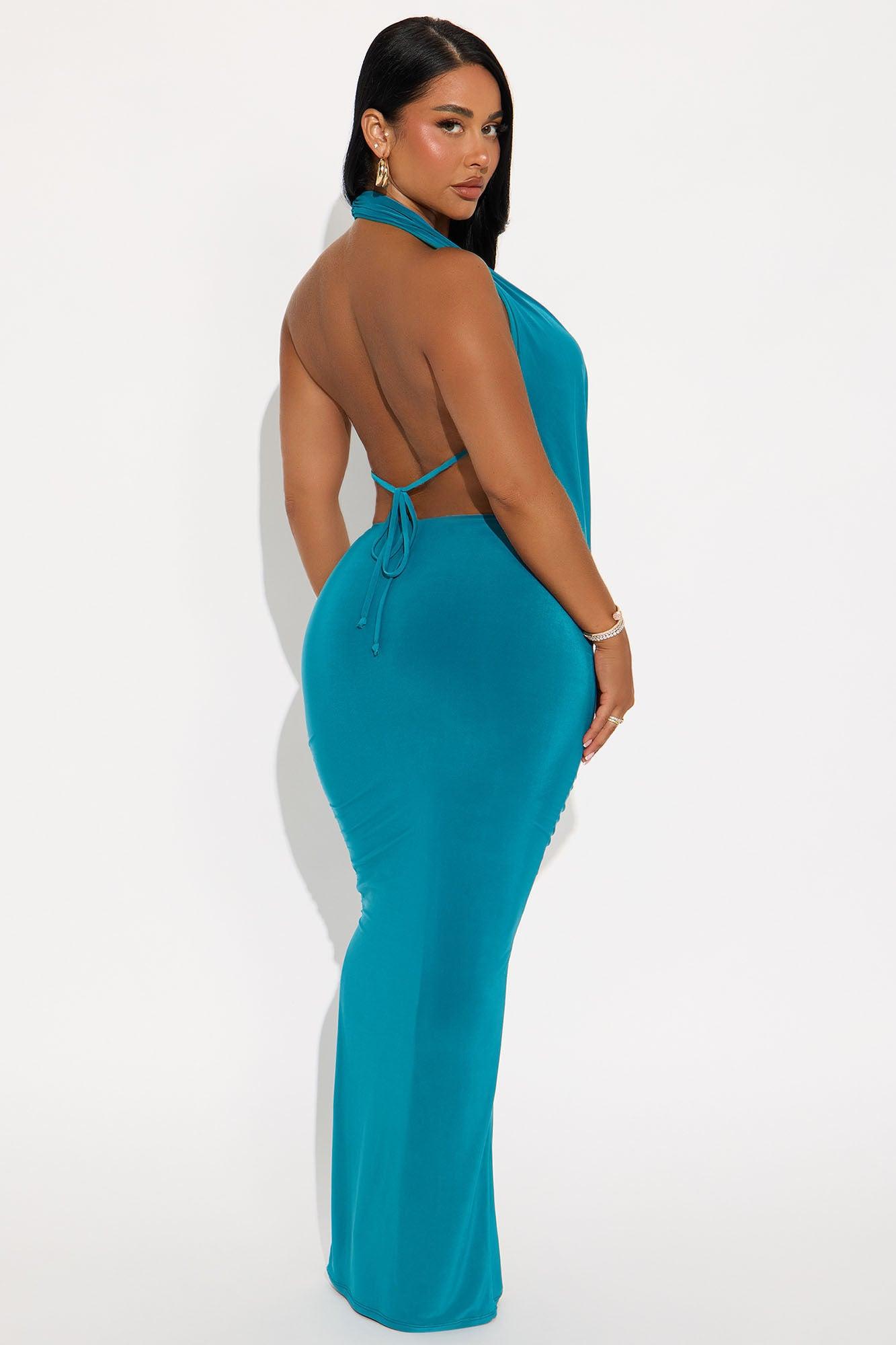 Hilana Draped Cowl Neck Backless Maxi Dress - Teal