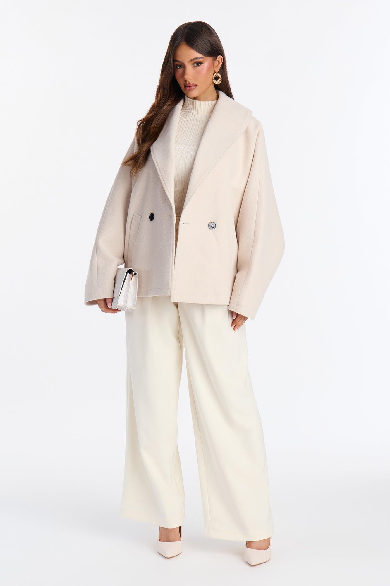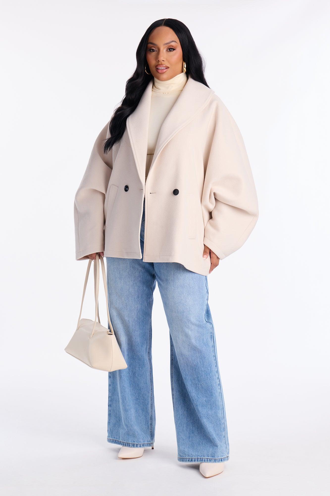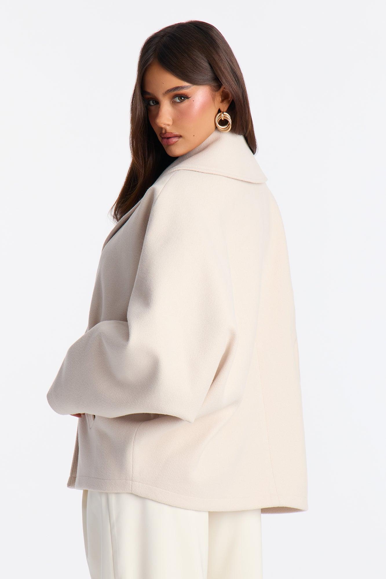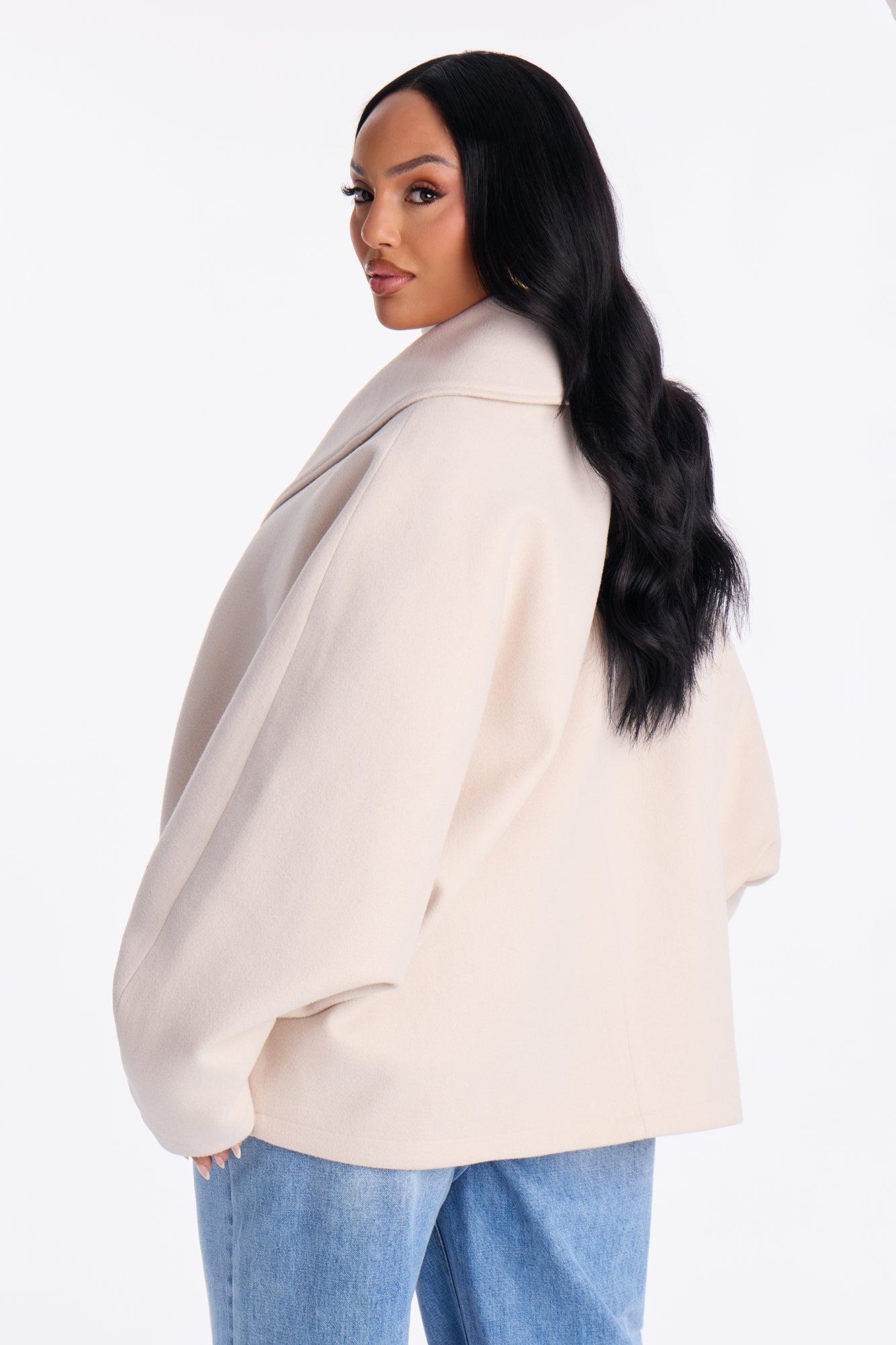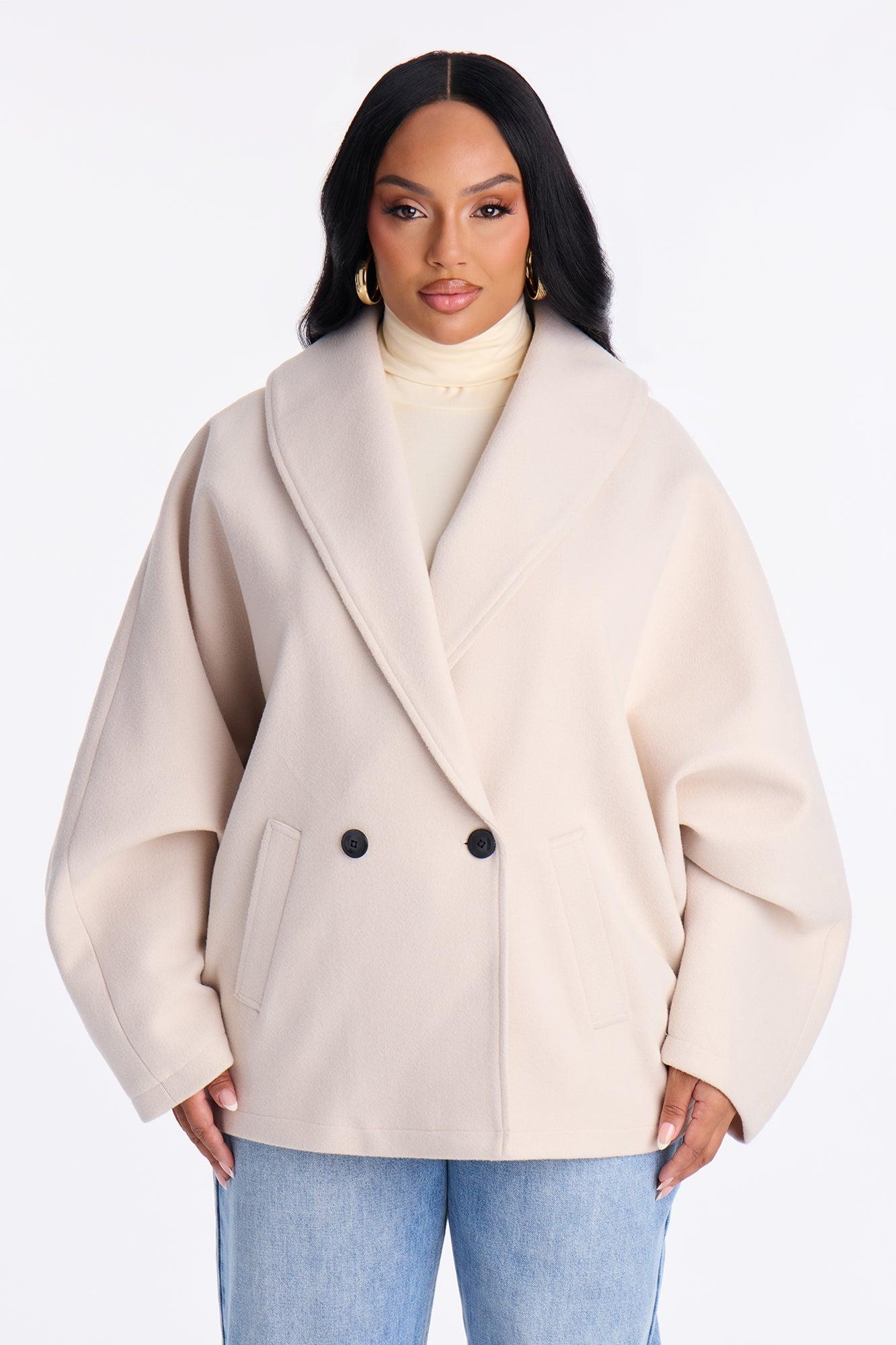 Hilda Double Breasted Faux Fool Slouch Coat - Oatmeal Female
