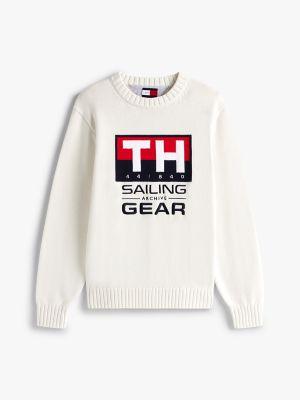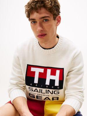 Tommy Hilfiger men's sweater. Bring a maritime-inspired feel to your layering game with this organic cotton sweater, featuring our bold sailing gear logo. Hilfiger Sailing — a limited-edition collection inspired by our archives, featuring timeless nautical style fused with contemporary design codes.