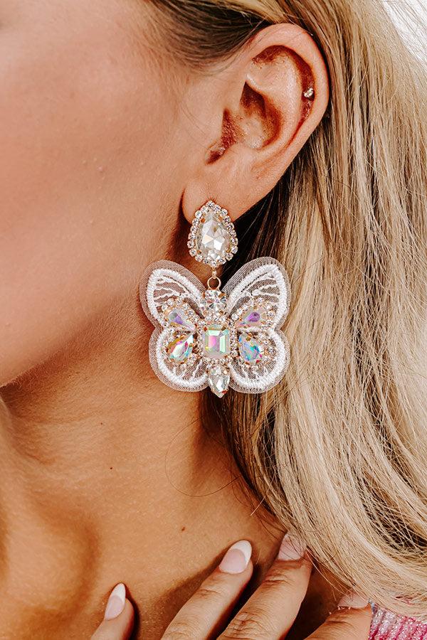 - Let your style take flight with these gorgeous earrings! - Shimmering rhinestone earrings - A teardrop stud and dangling butterfly with lace detail design - Post and back closure - Length 2.5 inches