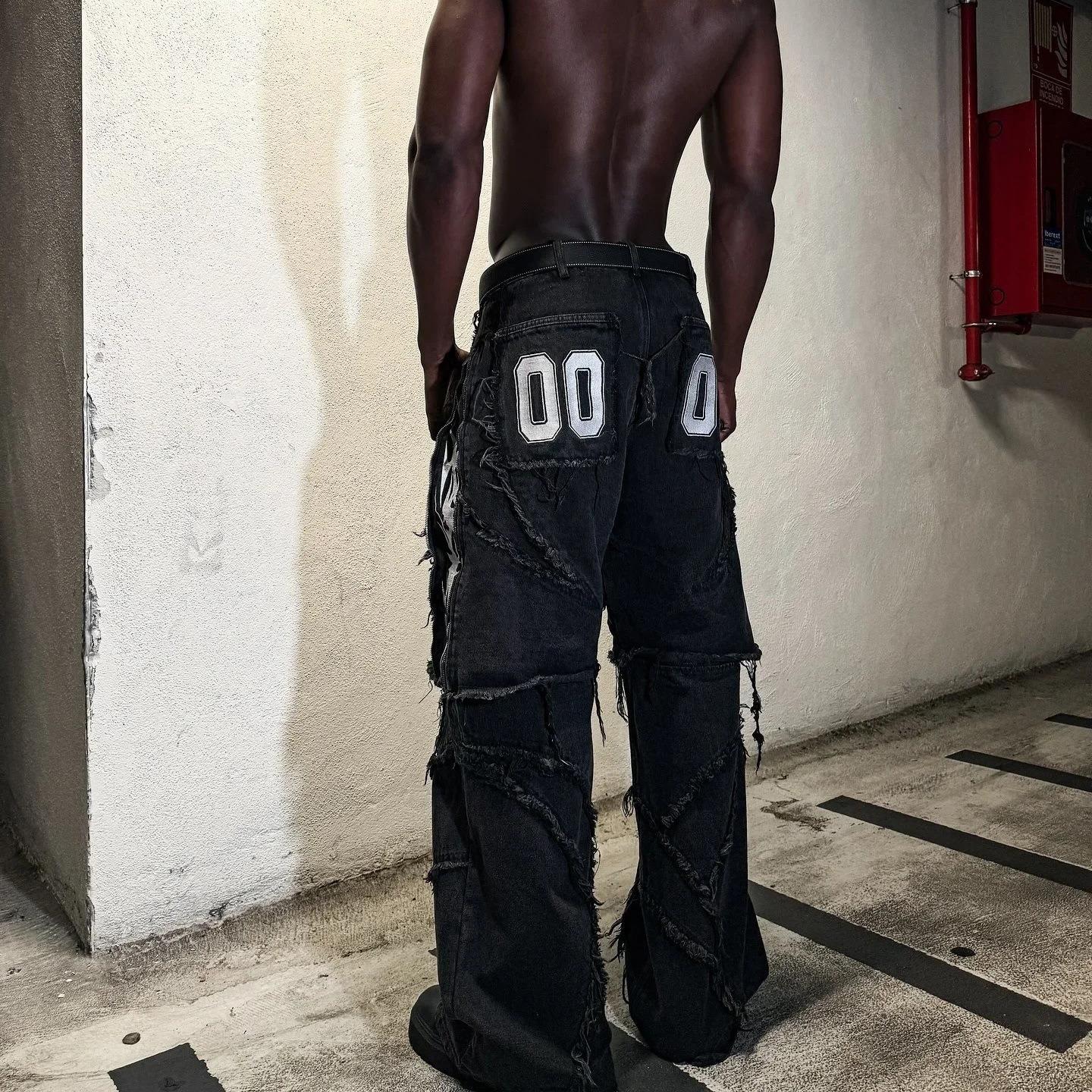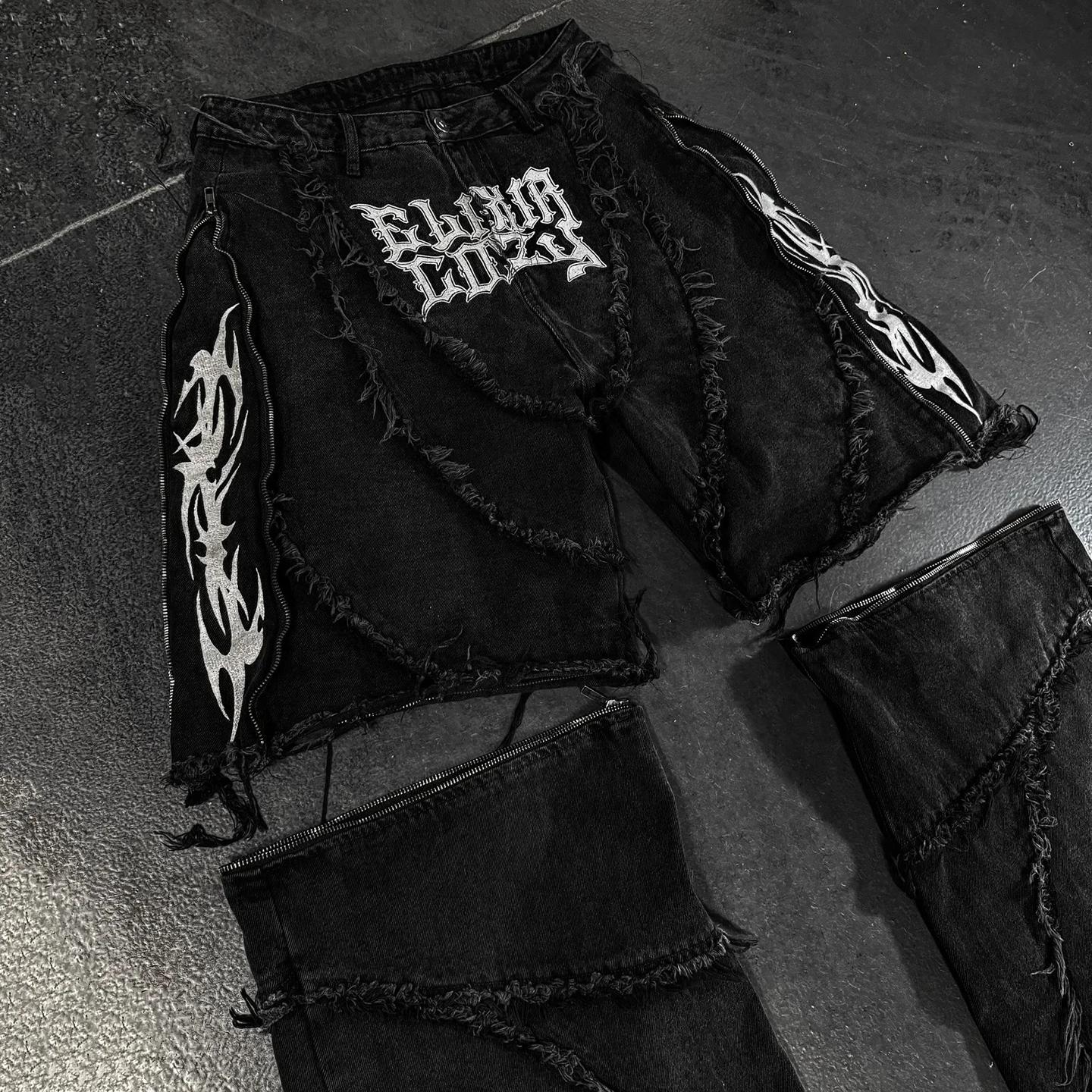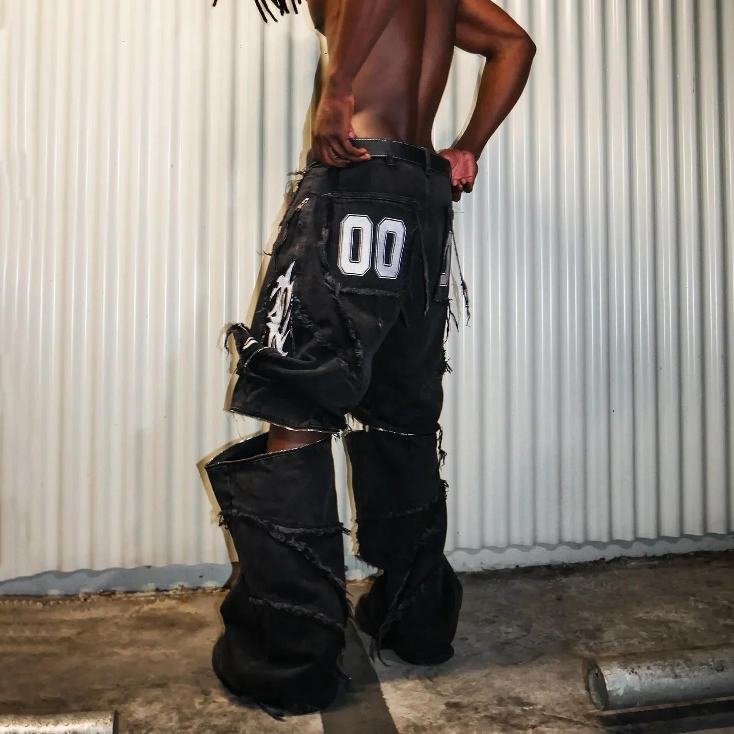 Hiphop Flame Distressed And Removable Denim Baggy Jeans