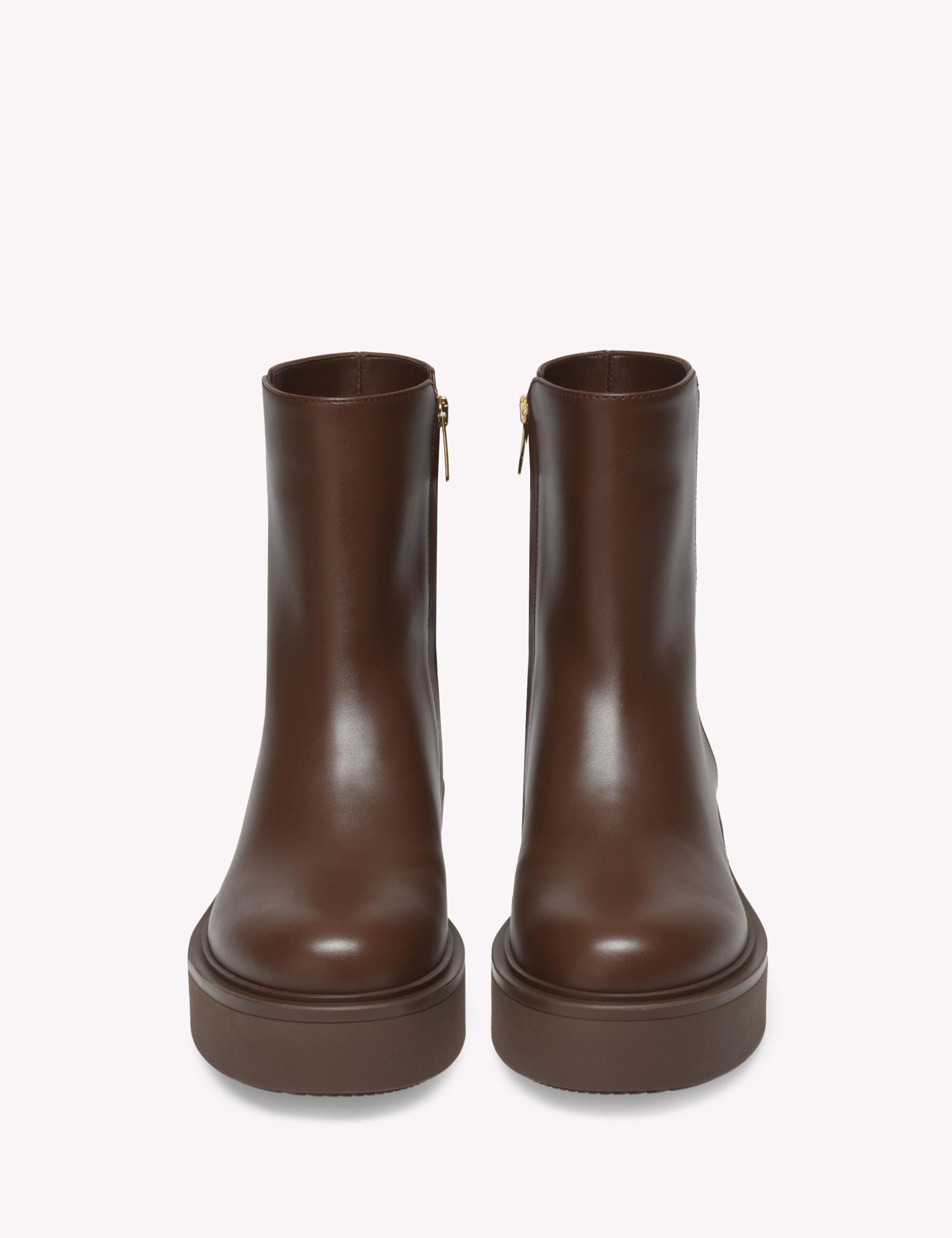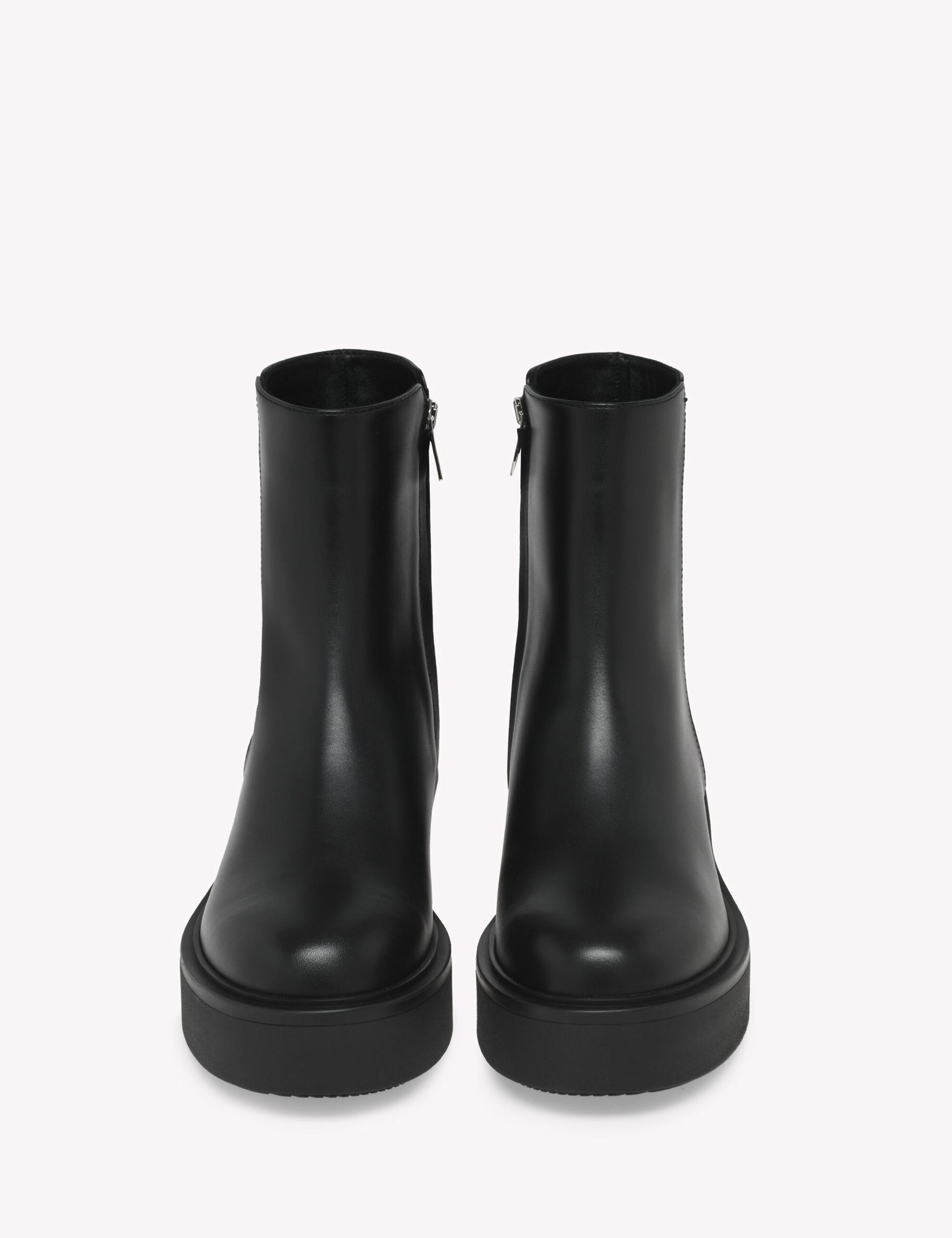 Crafted from leather, Hiro Bootie is a round toe style with an inner zipper. The rubber sole approximately measures 30mm at the front and 50mm at the back. Handmade in Italy.
