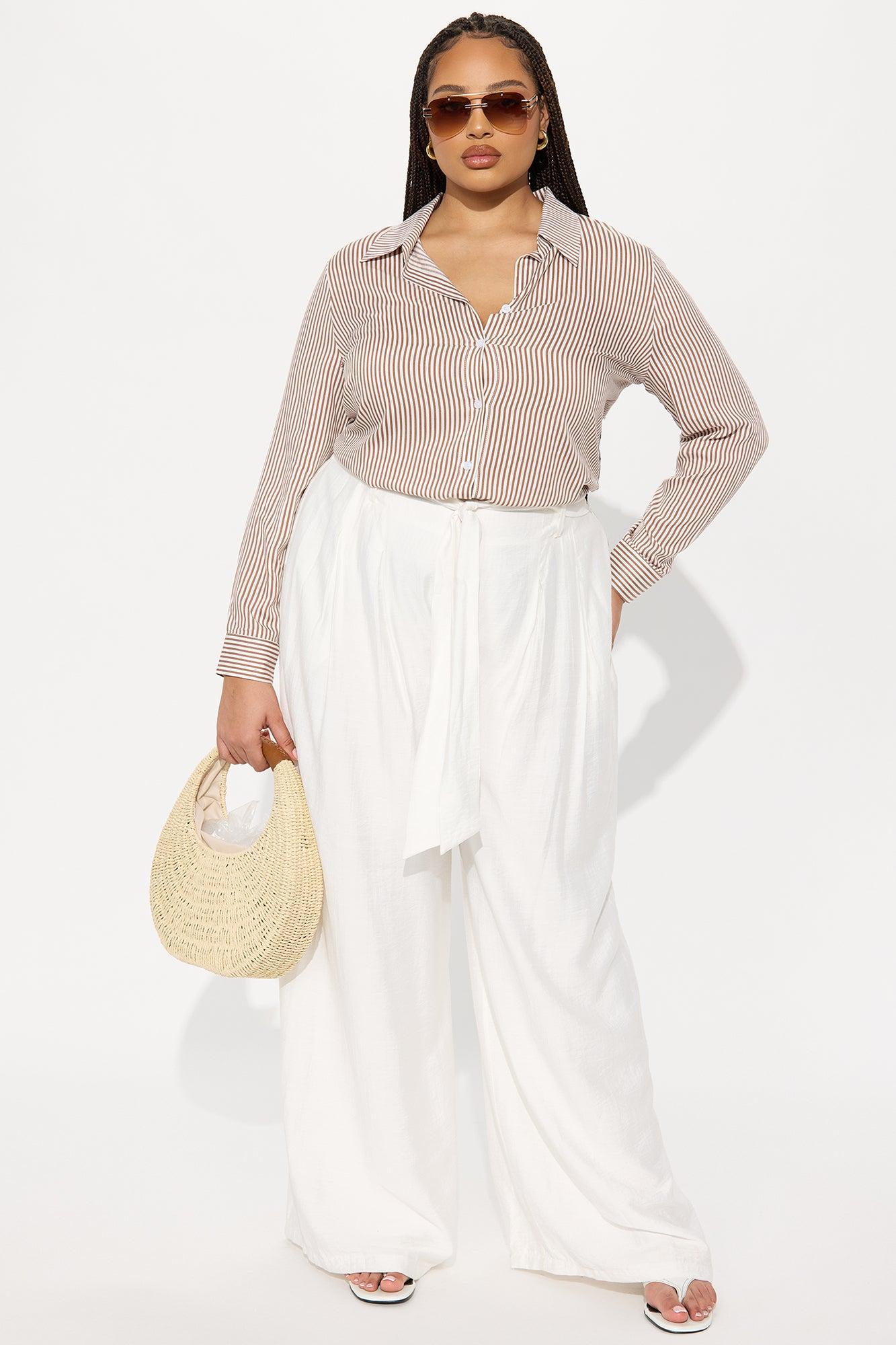 Available In Brown/combo And White/Blue. Challis Shirt Striped Button Up Non Stretch 100% Rayon Imported