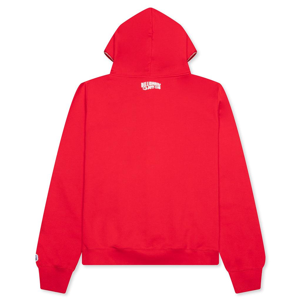Introduced within Billionaire Boys Club’s recent collection, the HMU Zip Front Hoodie champions the signature motifs with an eccentric twist. A full-length zipper can be seen from the bottom hemline and continues throughout the hood. Flush pockets and ribbed knitted cuffs sit comfortably on a French-terry base. 100% Cotton Screen-printed graphics Full length zip up Flush pockets Style No: 851-1304-66 851 1304 RED