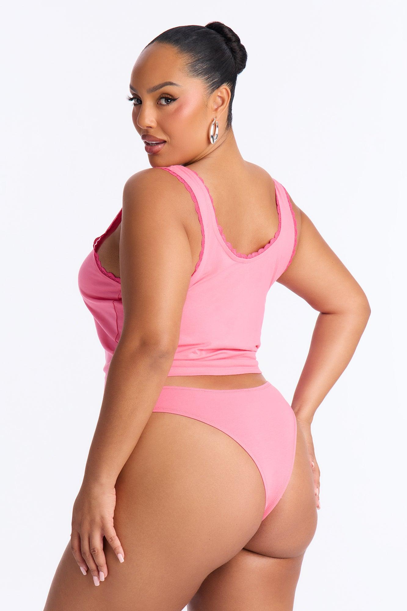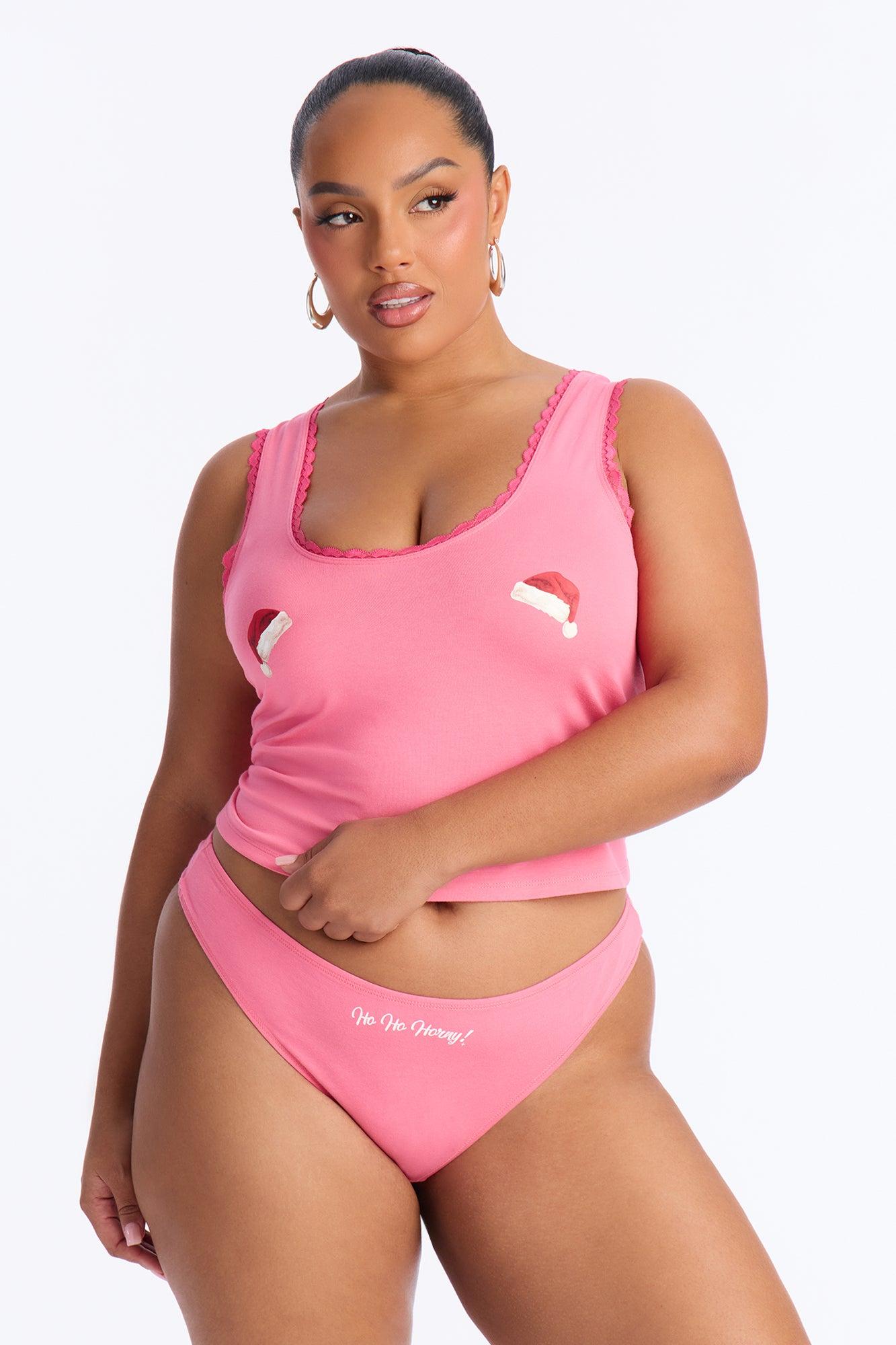 Available In Pink. 2 Piece Set Tank Top Ruffle Edges Verbiage Cheeky Panty Graphic Print Stretch Final Sale Disclaimer: Due To The Printing Process A Difference In Saturation May Occur. Each Garment Is Unique. Self: 95% Cotton 5% Spandex Imported