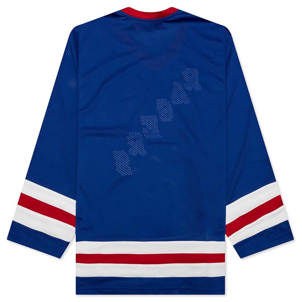 Inspired by vintage hockey styles, the Member of the Rage’s Rangers hockey jersey is tailored for both pros and enthusiasts. This jersey ensures top-notch comfort, an ideal fit, and a striking design, crafted from high-quality fabric for a laid-back look. 100% polyester Screen printed text Dropped shoulder Style No: MTFW23TT064048461846