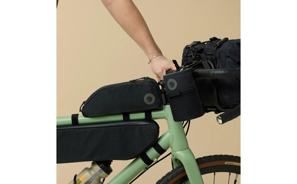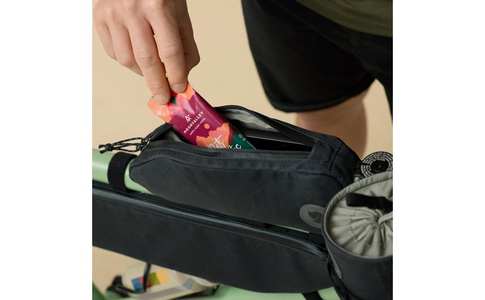Convenient top tube bag with easily accessed storage. Produced without PFAS.