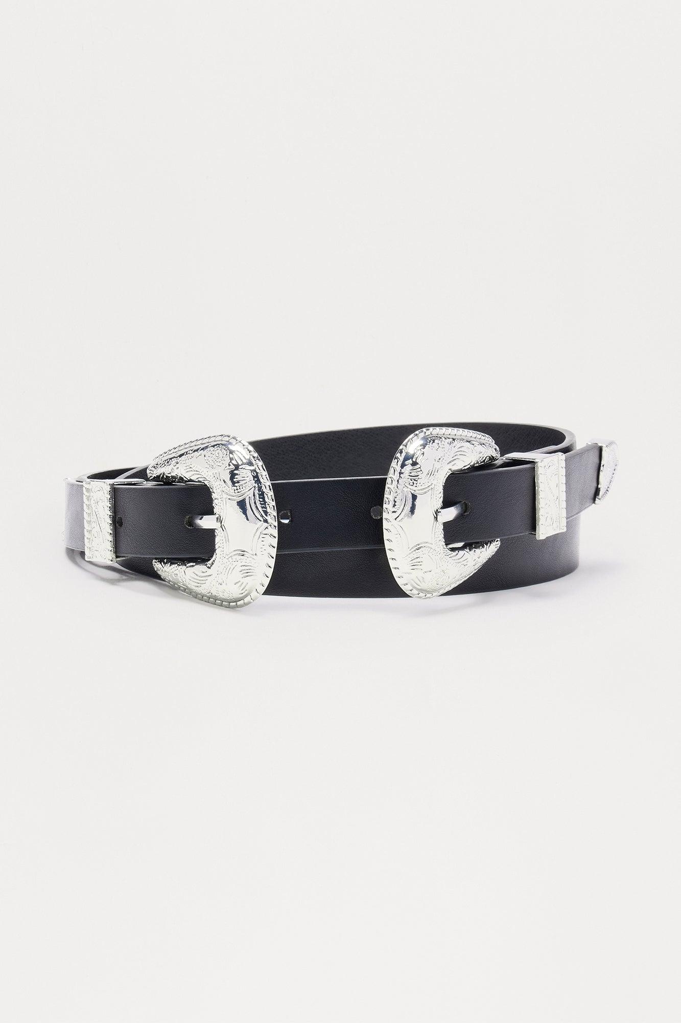Available In Black. Faux Leather Material Double Buckle Detail Hardware Detail Imported California Proposition 65WARNING: Cancer and Reproductive Harm - www.P65Warnings.ca.gov.