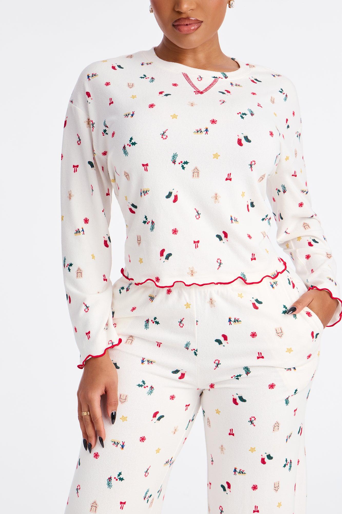 Holiday Season Long Sleeve PJ Pant Set - Ivory/combo Female