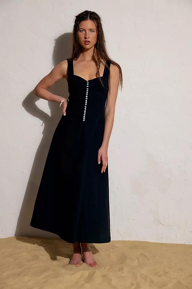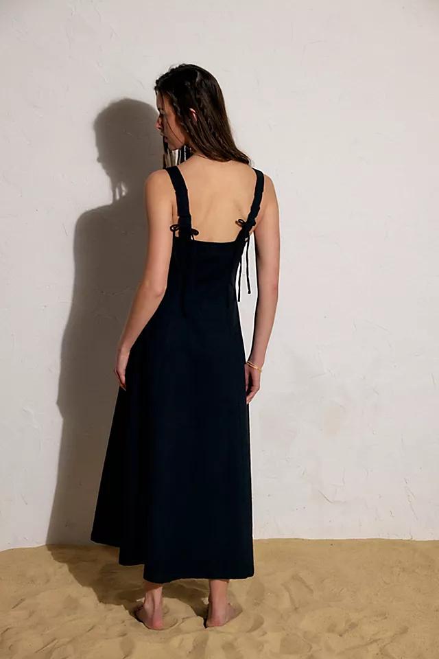 Simple yet so special, this staple midi dress from free-est is featured in a classic A-line style with buttons down the front and fully adjustable scrunched straps for a totally customized fit. Crafted from our so-special linen blend with incredible stretch that you'll have to see to believe.