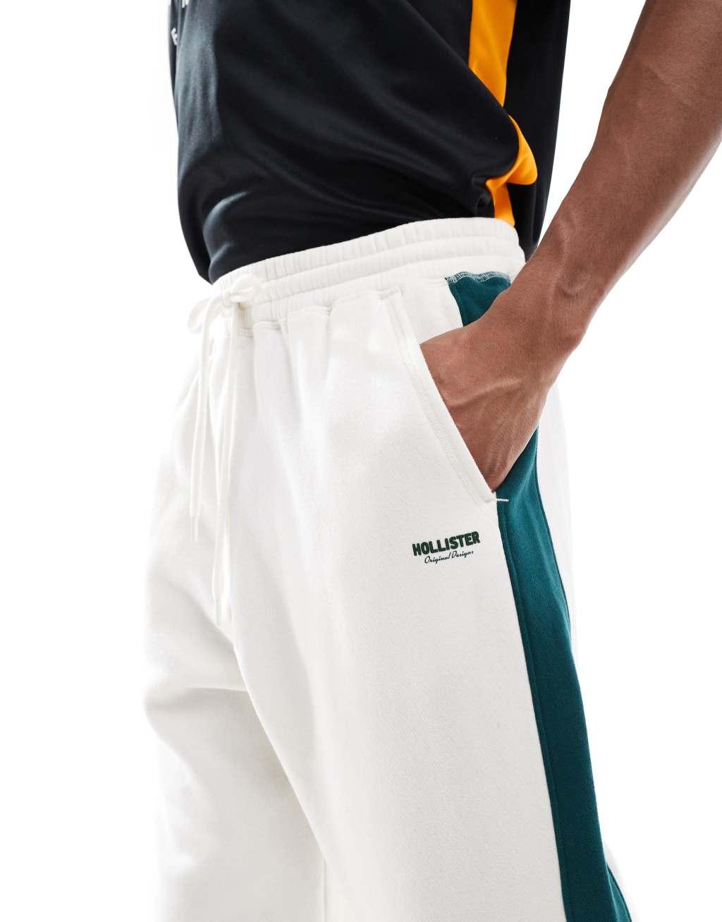 Hollister baggy varsity side stripe sweatpants in cream
