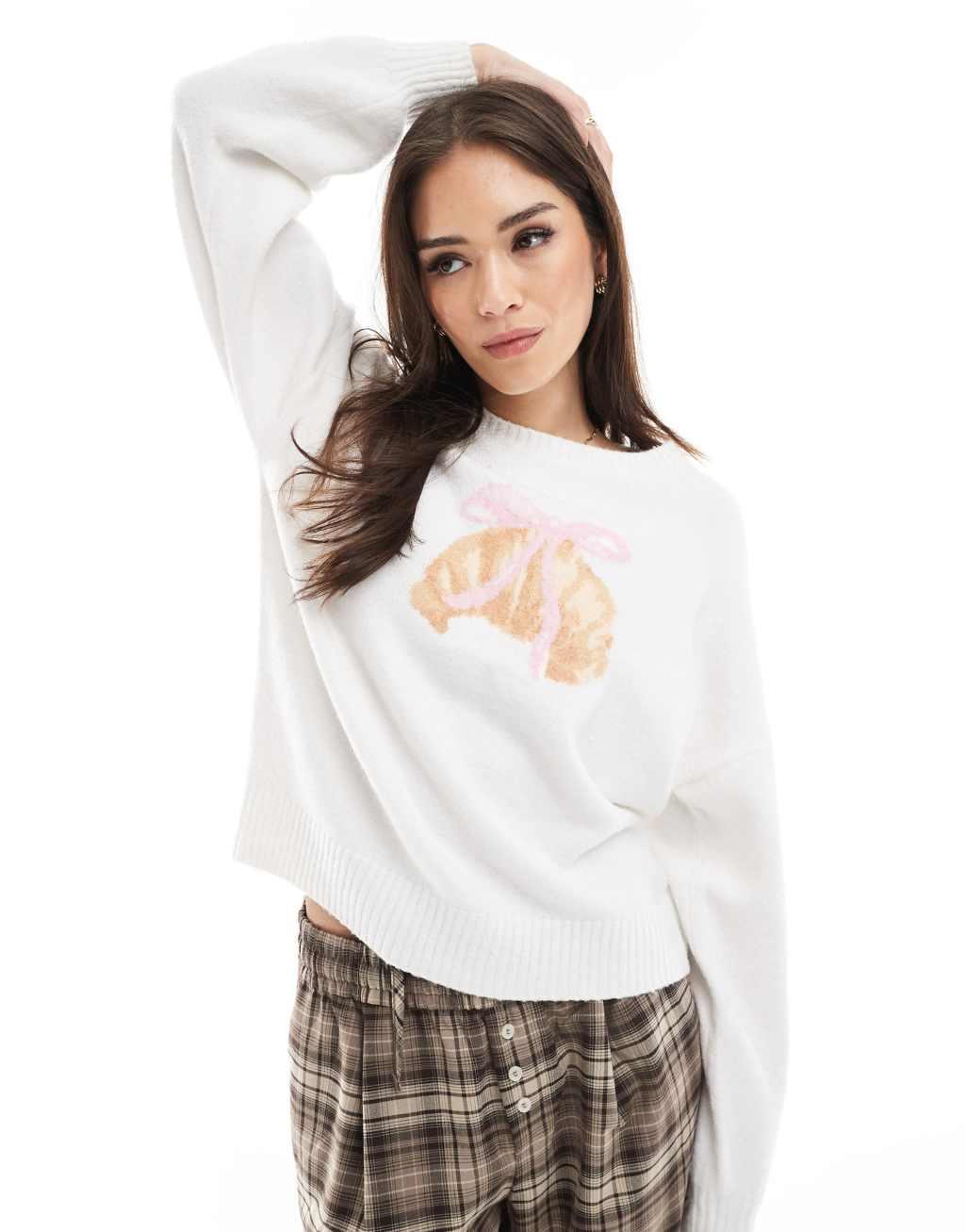 Hollister knitted croissant graphic sweater in cream