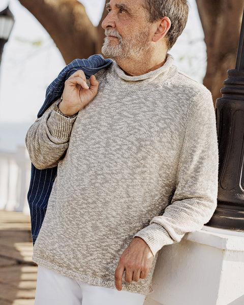 Time honored and sea-tested. We built the perfect fisherman's sweater, inspired by the traditional rollneck that has been a maritime classic for generations. When the salt water is spraying over the bow and the trade winds are gusting, you'll be glad you reached for the Fisherman's Sweater. Made in breathable cotton so you can still enjoy the afternoon sun.