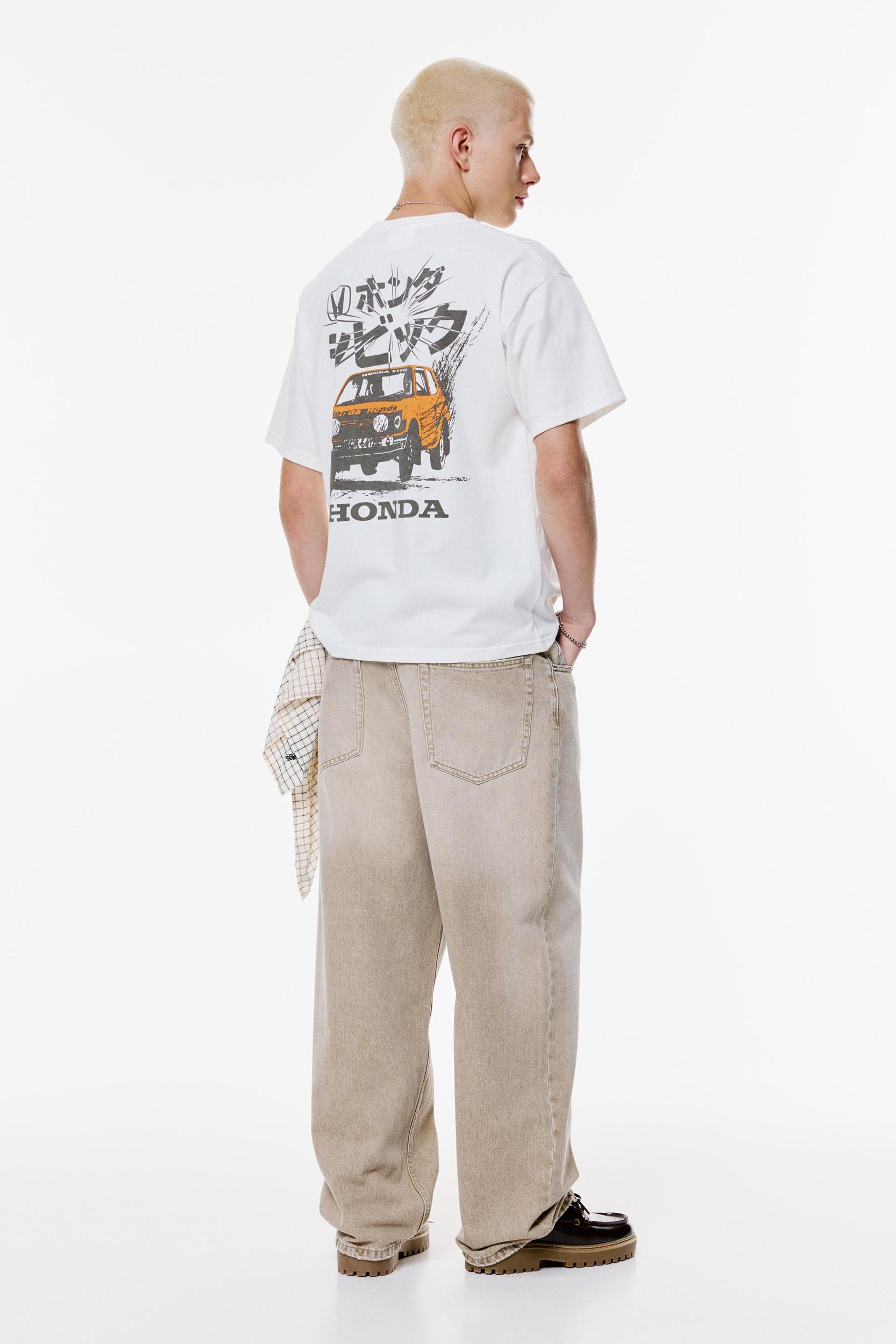 Honda license T-shirt with a Honda Civic Rally car graphic on the back, round neck and short sleeves.