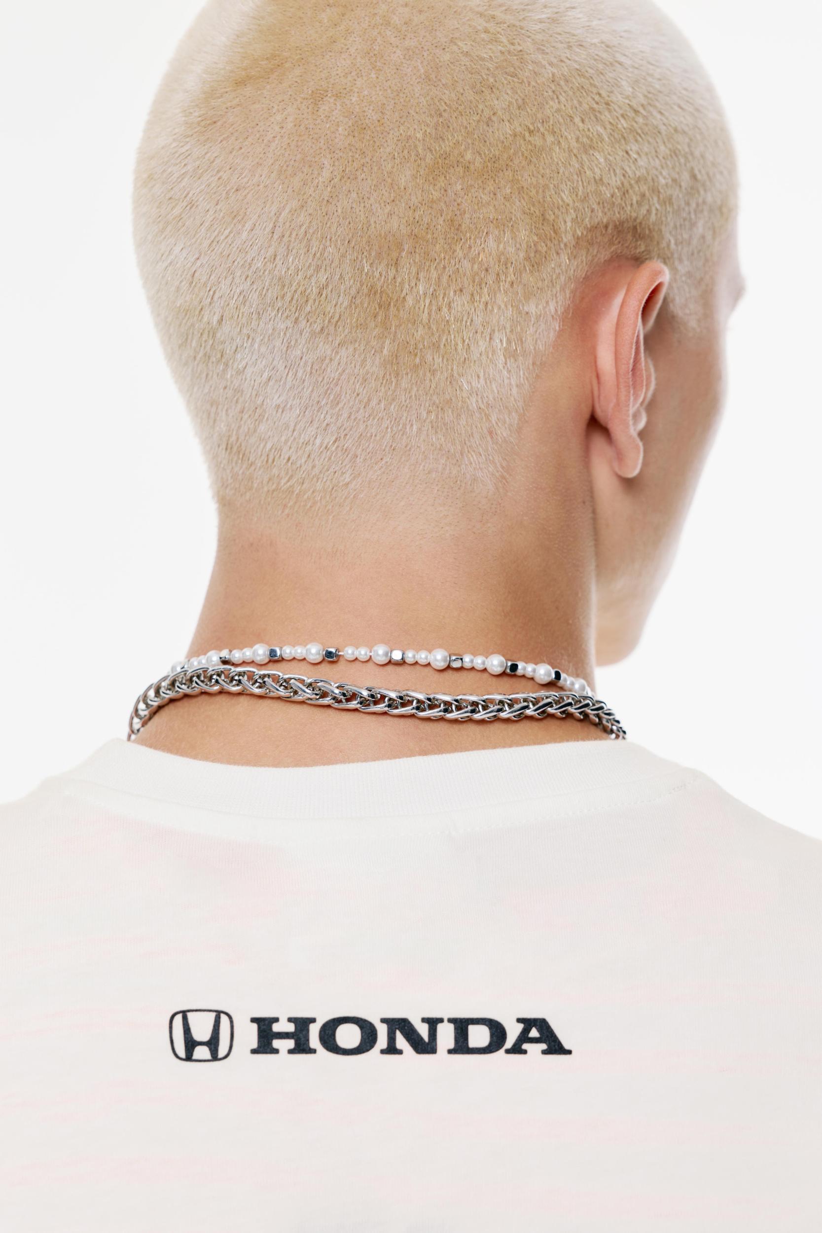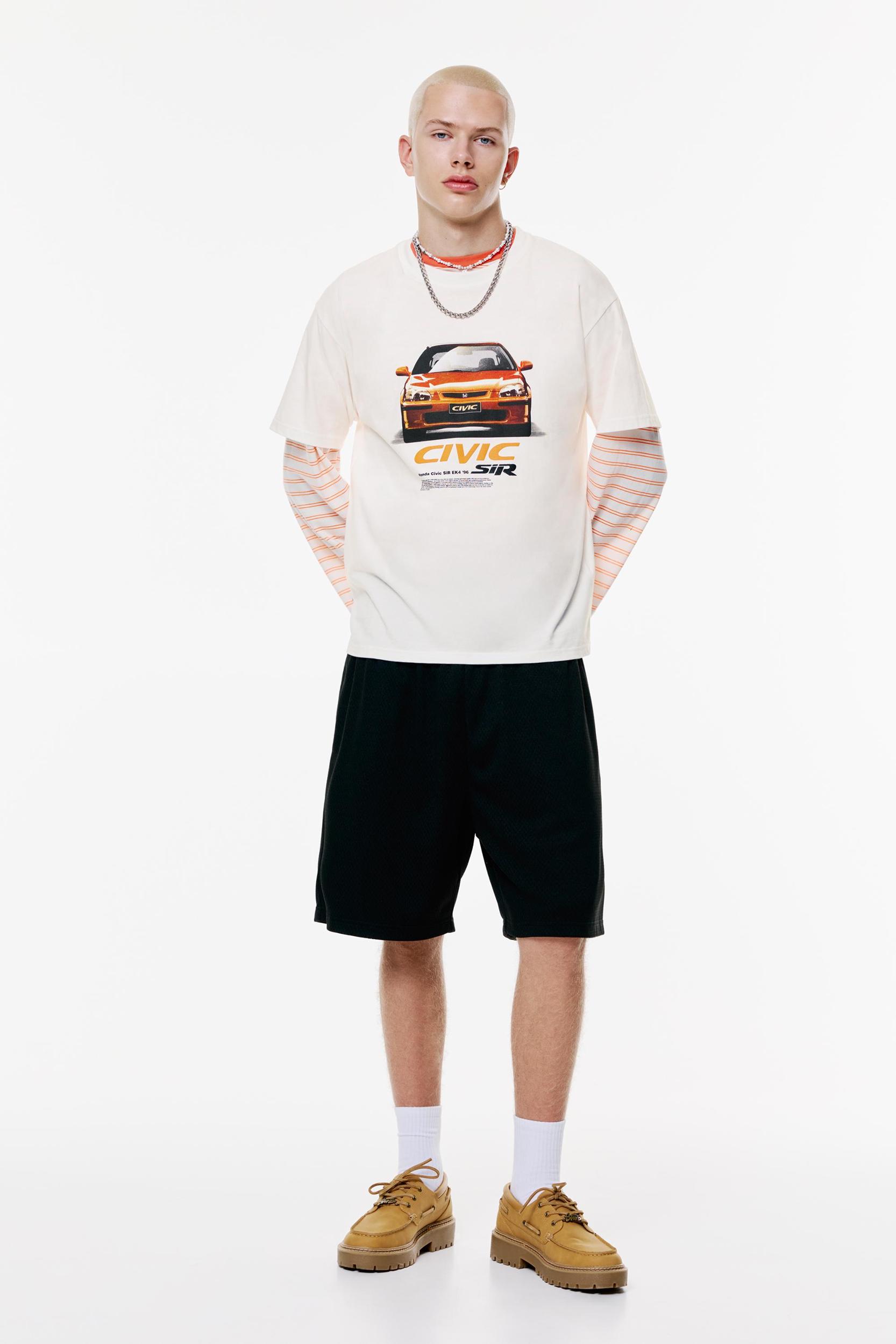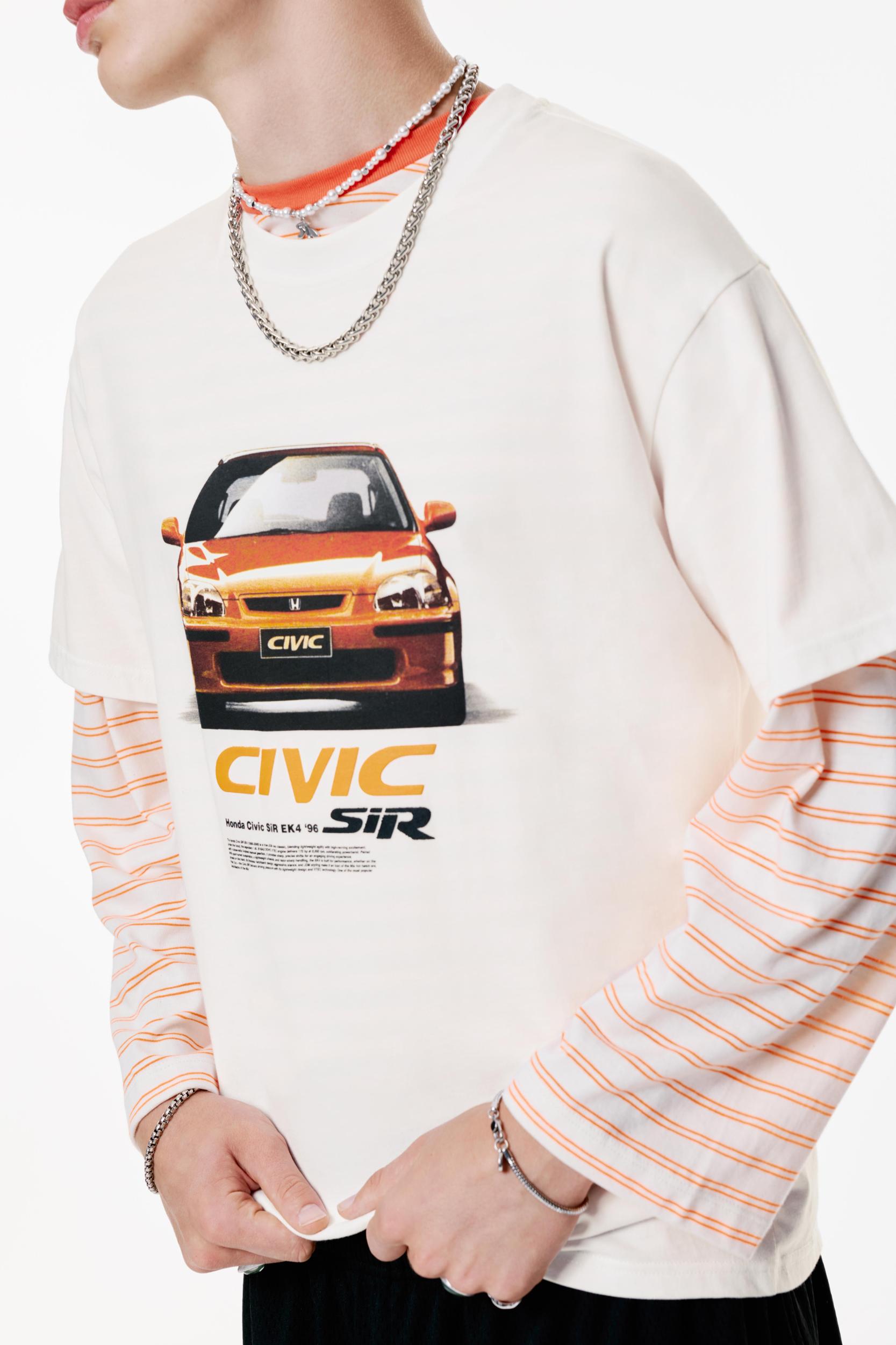 White short sleeve Honda license T-shirt with a Civic car graphic on the front, round neck and made of 100% cotton.