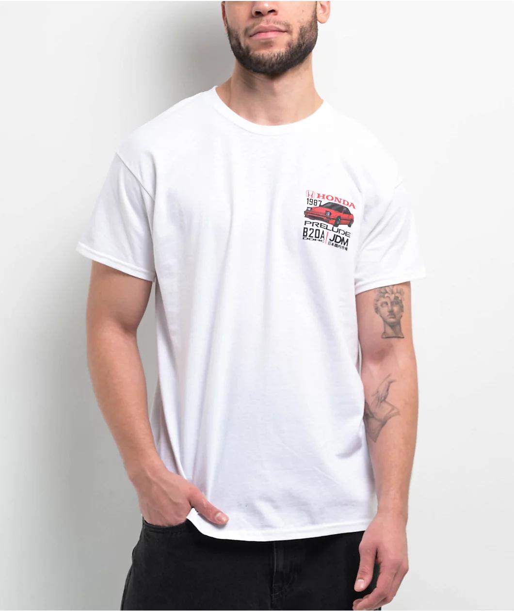 Fans of the 1987 Honda Prelude, or anyone looking to add a streetwear touch to their outfits, will love the Prelude To Perfection t-shirt. The white tee showcases art of the vintage car on the left chest and back in a bold, eye-catching red, black, a