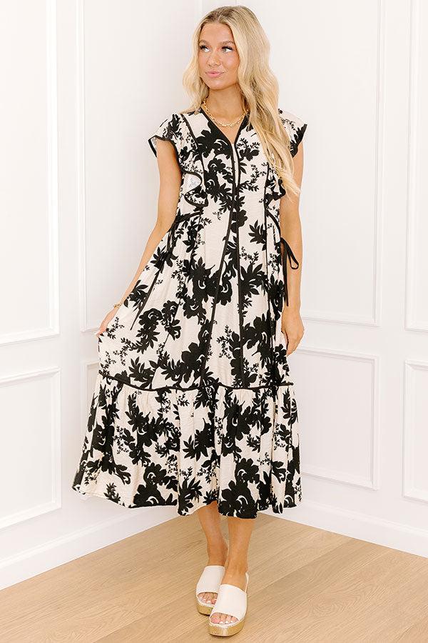 - Dress for the sunny side of life in this gorgeous midi! Sweet flutter sleeves and trendy side tie details give it a charming vibe, making it perfect for brunches and garden parties. A must-have for your warm-weather wardrobe!