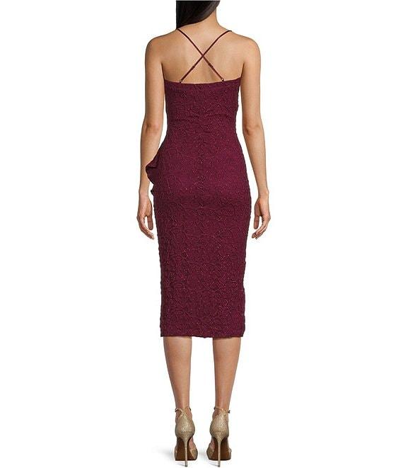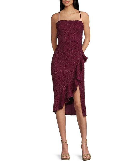 From Honey and Rosie, this dress features:Allover floral laceSquare neckline SleevelessCross back strapsAsymmetrical hemRuffle trimPull-on stylingPolyester/nylon/spandexHand washImported.