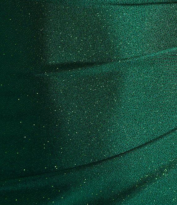 From Honey and Rosie, this dress features: Glitter knit fabric Scoop neck Sleeveless Adjustable spaghetti straps Corset bodice Pleating at the wearer's left waist Envelope skirt Pleating Lace-up back and zip closure 57 1/2" length Polyester/spandex Hand wash/lay flat to dry Imported.