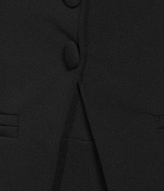From Honey and Rosie, this jumpsuit features: Strapless neckline Vest-inspired bodice Non-functional front button placket and slit pocket Zippered back Lined bodice 31 5/8" inseam 44 1/2" outseam 14" front rise 16 1/2" back rise Polyester/spandex Hand wash; line dry Imported.