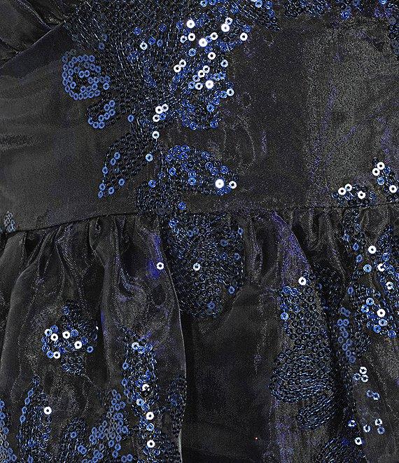 From Honey and Rosie, this dress features: Sequin embellished organza fabric V-neckline Puffed short sleeves Fit-and-flare silhouette 28 1/4" length Pull-on styling Polyester organza; body full lined Machine wash/lay flat to dry Imported.