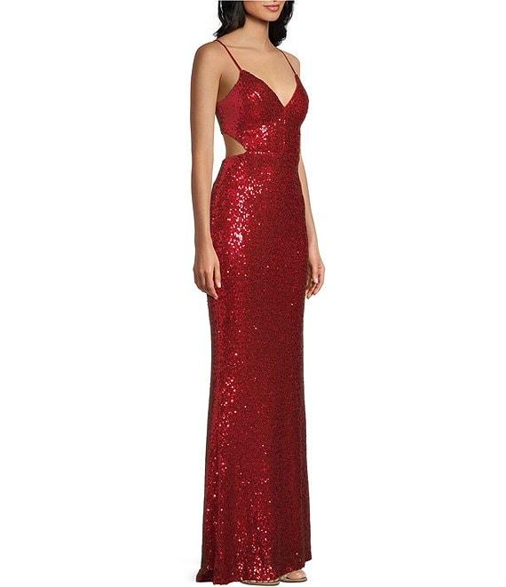 Honey and Rosie Sequin Lace-Up Back Cut-Out Long Dress