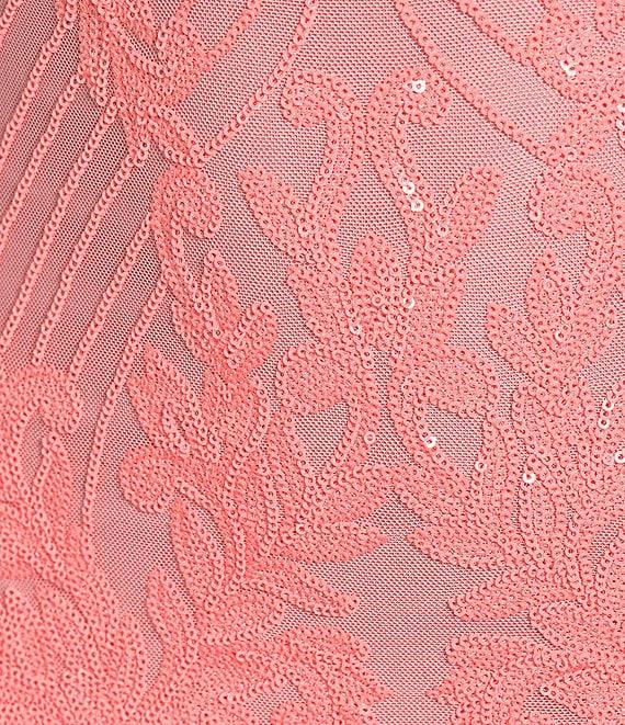 Honey and Rosie Sequin Mesh Scoop Neck Tie Shoulder Low Back Dress