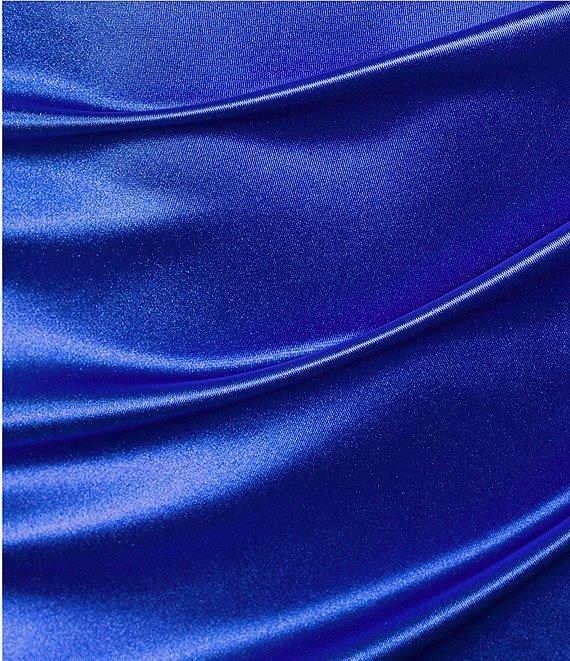From Honey and Rosie, this dress features: Sheath silhouette Silky satin fabrication Front and back V-neckline Sleeveless Spaghetti straps Shirred detailing Asymmetrical hem Pullover styling Approx. 29.25" length from bodice high point to hem at side seam level Polyester/spandex Machine wash/lay flat to dry Imported.