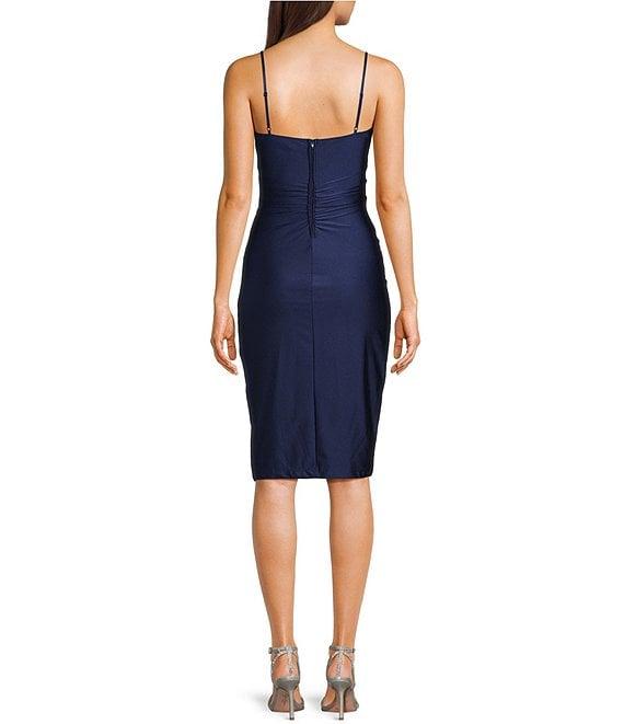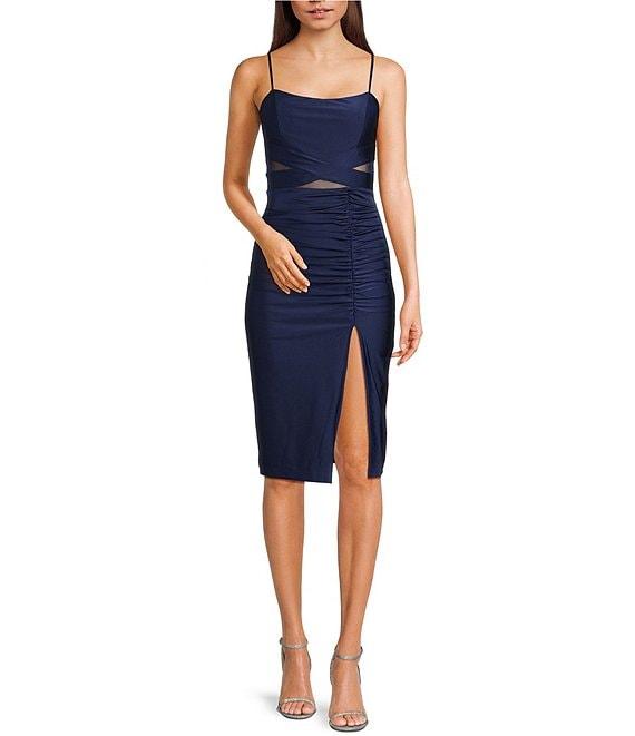 From Honey and Rosie this dress features: Nylon tricot knitSquare necklineSleevelessAdjustable spaghetti strapsBra cupCriss cross meshFront empire detailShirring down front skirt princess seamSmall slit at hemLinedZipper back closureApprox. 35 1/4"Nylon/spandexHand washImported.
