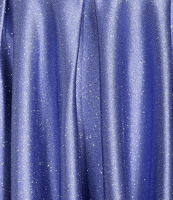 From Honey and Rosie, this dress features: Square neck Sleeveless Adjustable spaghetti straps A-line pleated glitter Zipper center back Large bow/bow tails at the back skirt/close with a snap set Lined in bodice only Approx. 27 3/4" Polyester/spandex Hand wash Imported.
