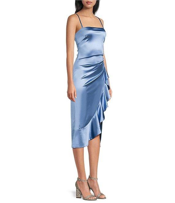 From Honey and Rosie, this dress features: Square necklineSleevelessAdjustable spaghetti strapsCrisscross back A-symmetrical front skirtWide ruffle detailShirred at the front waist40" lengthPull-on stylingPolyester/spandexMachine wash/dry flatImported