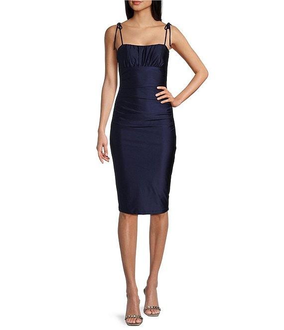From Honey and Rosie, this dress features: Square neckSleevelessSpaghetti tie strapsShirred throughoutBra cupsEmpire seamPullover stylingKnee length36" lengthNylon/spandexHand wash/lay flat to dryImported.