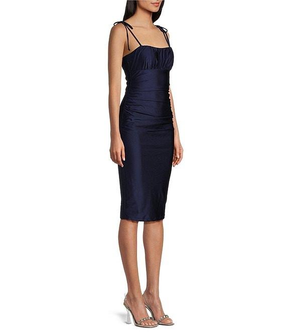 Honey and Rosie Spaghetti Tie Strap Shirred Midi Dress