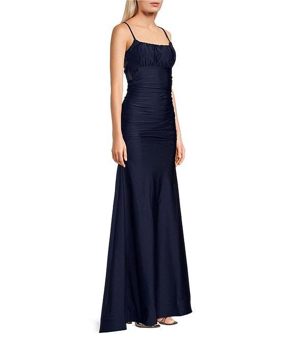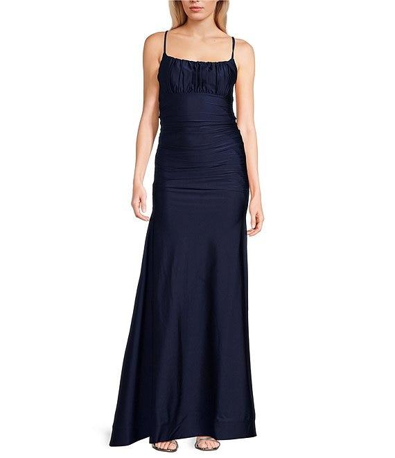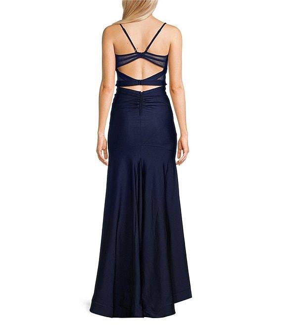 From Honey and Rosie, this gown features: Knit fabrication Square neck Sleeveless Adjustable spaghetti straps Emma bodice with mesa bra back bodice Zipper and hook back closure A-line 54 3/4" inseam Polyester/spandex Dry clean Imported.