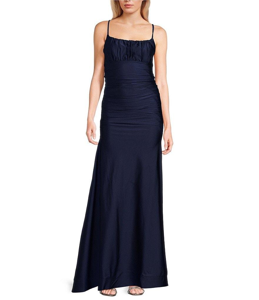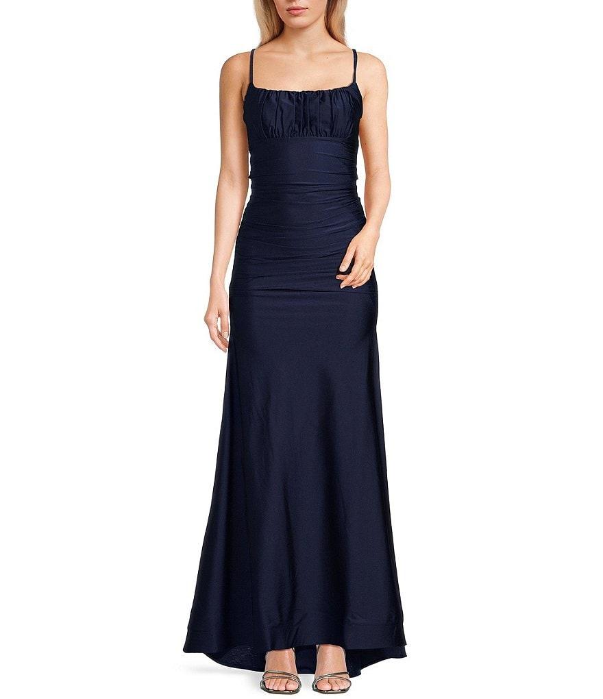 Honey and Rosie Square Neck Adjustable Strap Shirred Gown