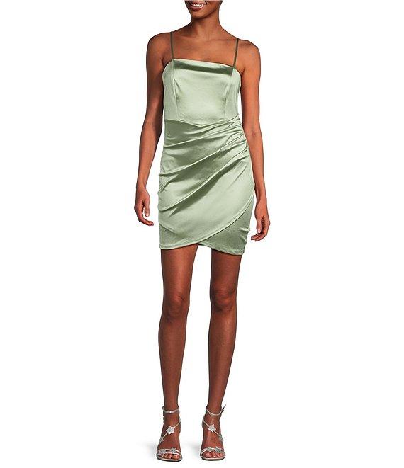 Honey and Rosie Square Neck Faux Wrap Satin Dress