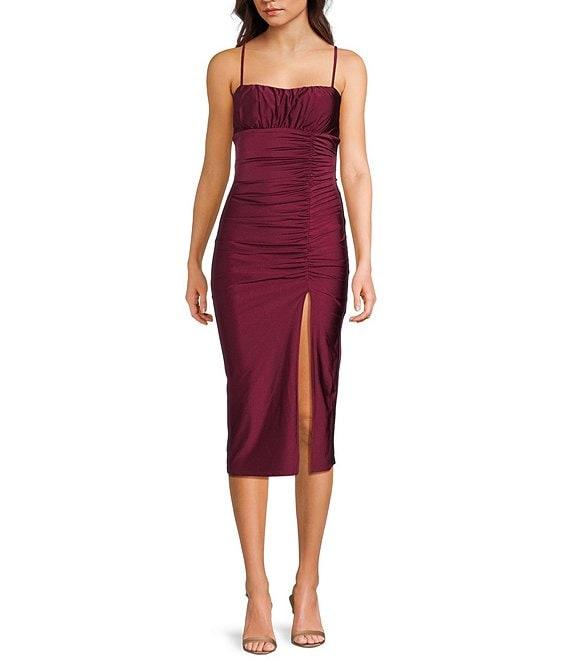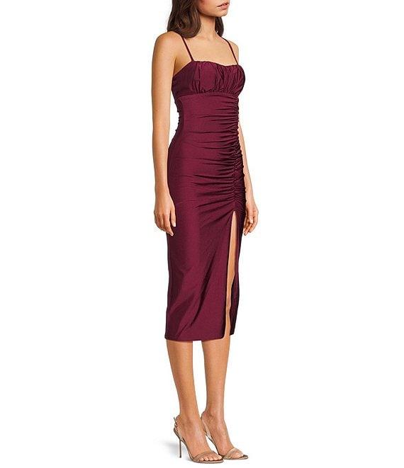 Honey and Rosie Square Neck Ruched Side Midi Dress