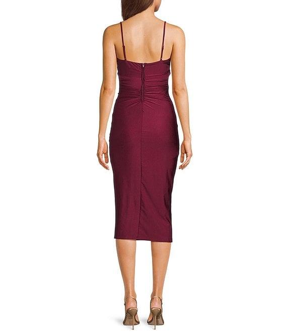 From Honey and Rosie, this dress features: Square neckline Sleeveless Shirring Princess seams Front slit Zip back closure 39.5" length Nylon/spandex; lined Hand wash/lay flat to dry Imported.